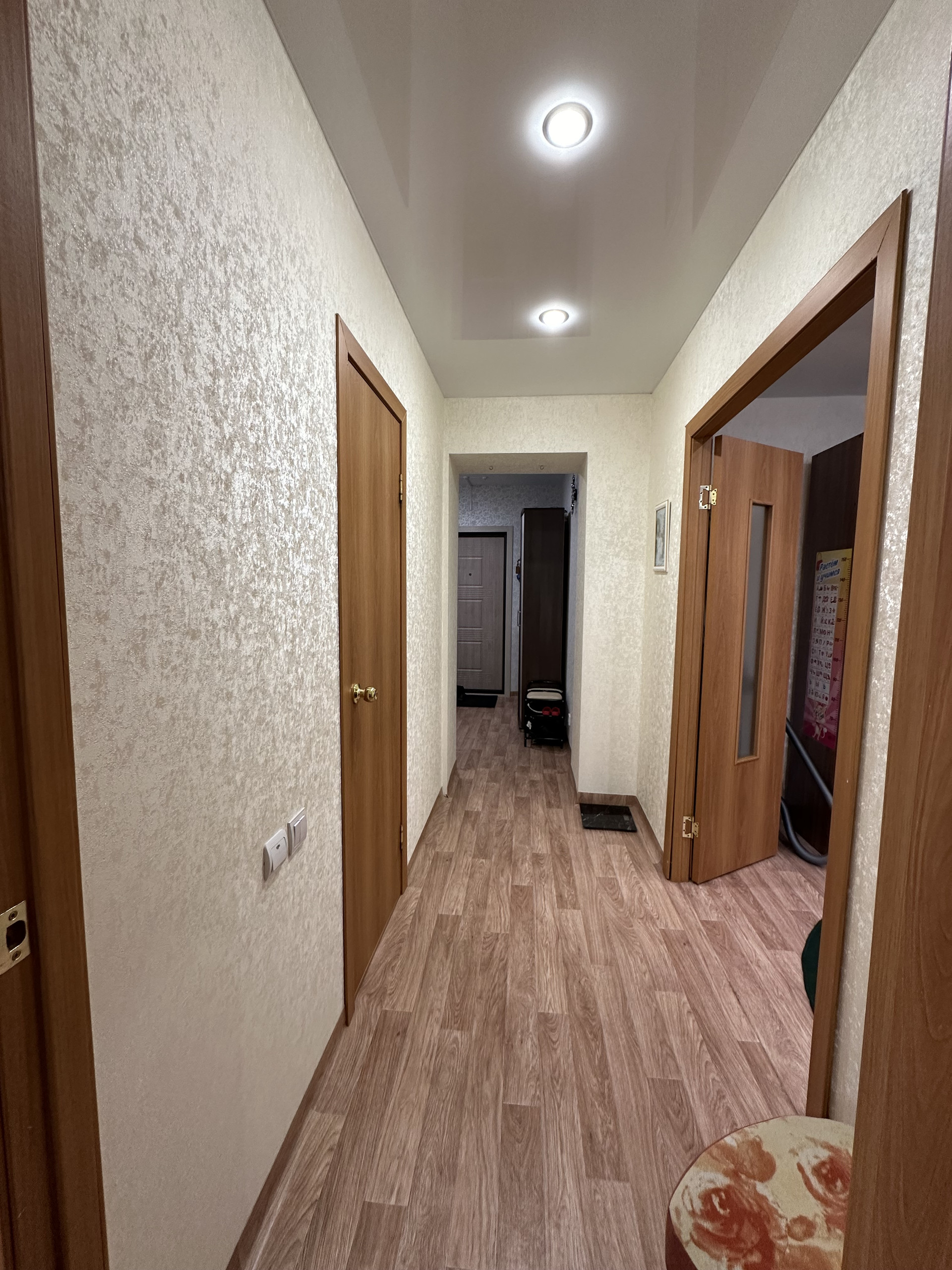 В продаже 1- комнатная квартира с балконом на два окна и что - немаловажно: с двумя выходами на балкон. На фото видно ширину внешних стен, хороший видовой этаж, перед окнами нет нагромождений, санузел совмещен- пол в кафеле, стены панель. Новая качественная входная дверь , натяжные потолки и кухонный гарнитур достанутся приятным бонусом новому хозяину. Самое главное - очень повезет с соседями, не пожалеете. продажа в связи с расширением жилплощади. Квартира по документам готова к продаже, нет никаких долгов, один взрослый собственник, вся сумма в договоре . Имеется разумный торг после просмотра.