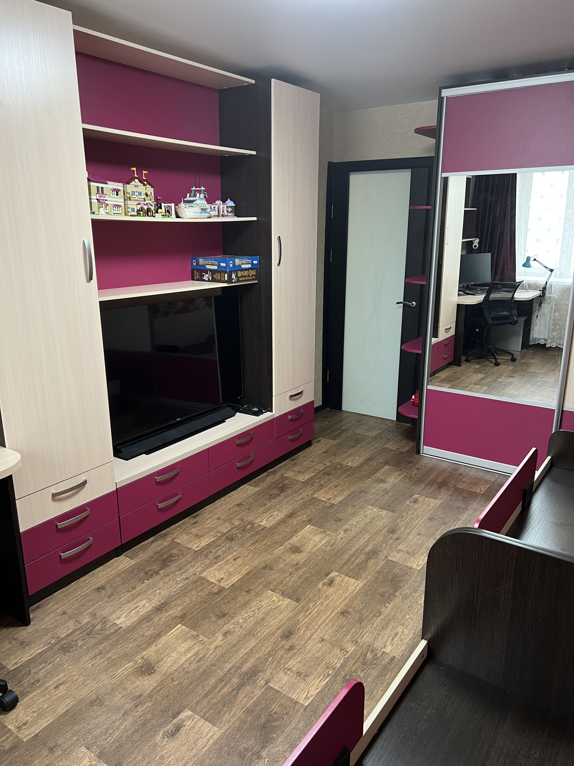 Предлагаю вашему вниманию квартиру, с уникальной планировкой. Расположение комнат на 2 стороны, 3 отдельные спальни, по размеру приблизительно равноценные, раздельный санузел, отделан кафелем, застекленная лоджия. Везде натяжные потолки, и светодиодное освещение. На полу линолеум таркет в 1 цвет на всю квартиру. Трубы поменяны, краны и унитаз стоят Испанские, биметаллические радиаторы везде поменяны, квартира теплая - постоянно выключены, включаем только в самые морозы. Двери дорогие с прекрасной шумоизоляцией и магнитными замками. Остается шкаф в коридоре, 2 шкафа в общем коридоре, угловой шкаф в спальне, в зале шкаф-купе, шкаф с комодом, угловой стол, детская на 2-х детей- шкаф-купе, горка, 2 кровати, полки, угловой стол, инверторный кондиционер LG, кухонный гарнитур, варочная поверхность Аriston, вытяжка Elikor на 40 м2. Комфортный 7 этаж, Широкие подоконники, прекрасная шумо и теплоизоляция. Во дворе детская площадка. Все необходимое для Вас и Ваших близких в шаговой доступности: продуктовые магазины, детский сад, поликлиники - детская и взрослая, гимназия 1, каток.