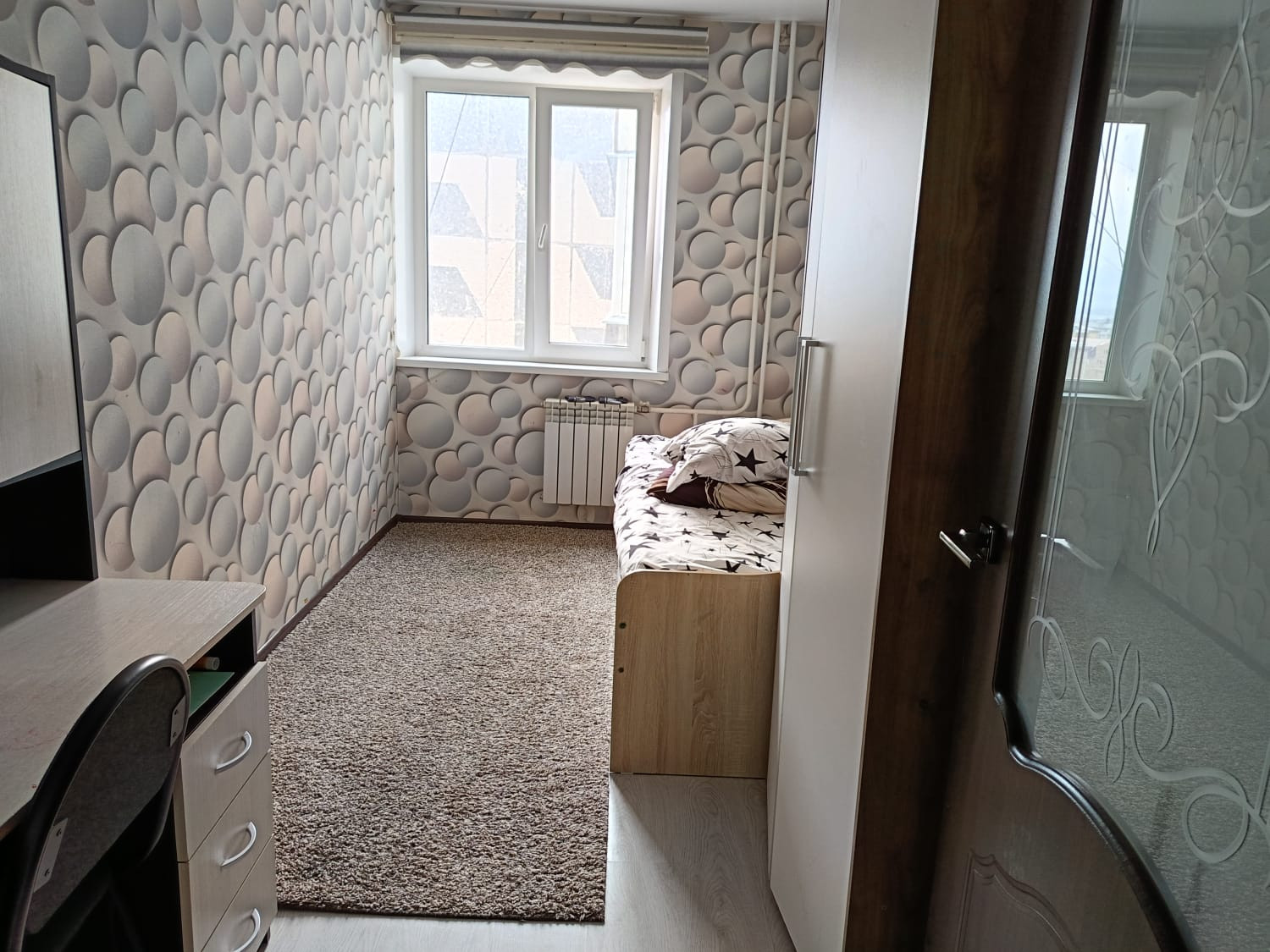 Раздельный санузел обеспечит удобство использования для всех членов семьи. Окна квартиры выходят во двор, где расположена детская площадка – идеальное место для игр ваших детей. Также рядом находится школа, что очень удобно для семей с детьми.