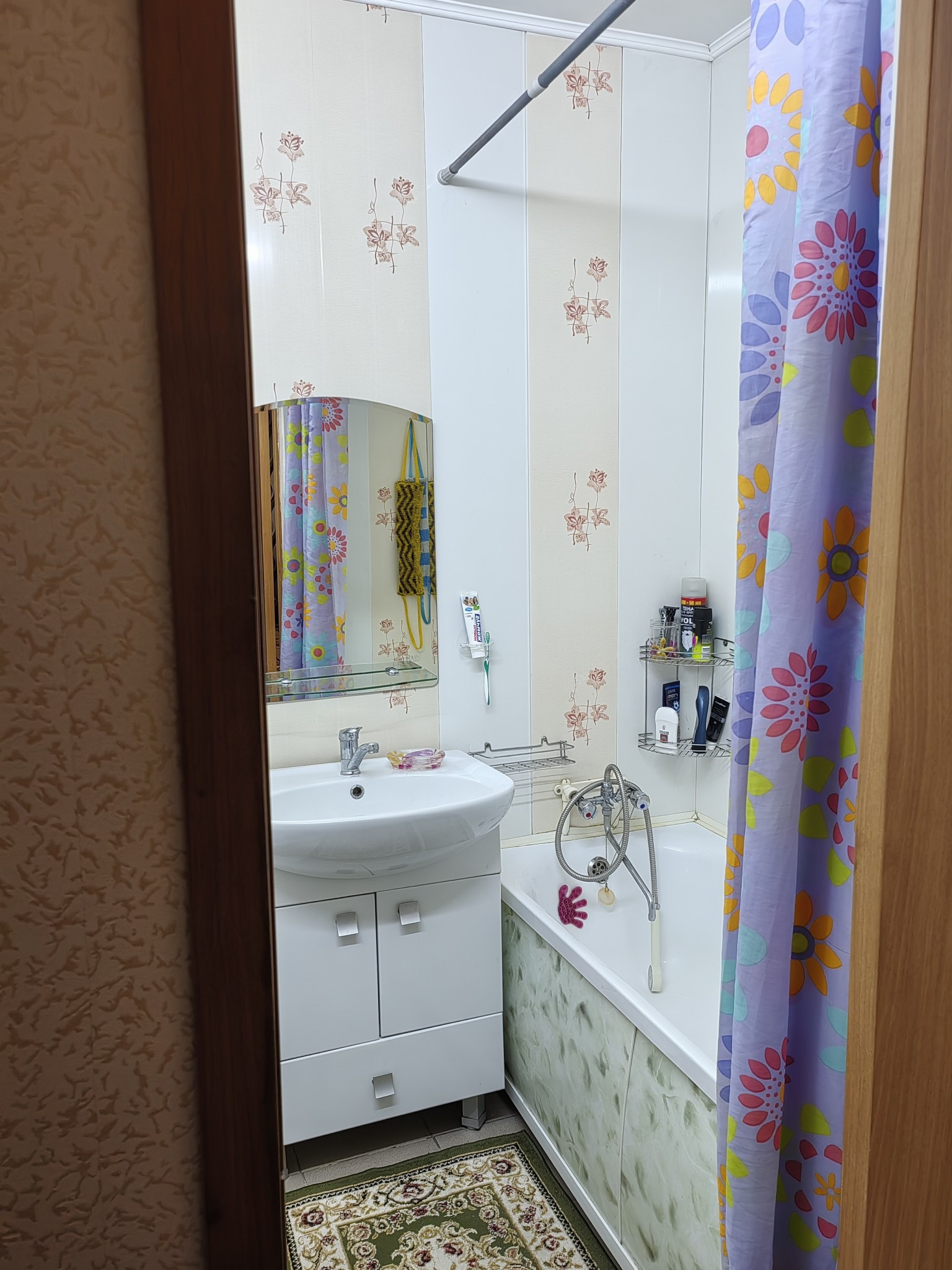 Продаётся уютная, теплая  солнечная квартира, на комфортном третьем этаже, внутри дома, окна выходят во двор. В квартире зимой очень тепло, от летнего зноя вас спасет кондиционер. Оборудованна гардеробная, санузел совмещенный, стиральная машинка входит,счетчики установлены. Балкон застеклен, установлена сушилка для белья, шкафчики и полочки. В пешей доступности магазины, школа, больница, бассейн, детские сады.