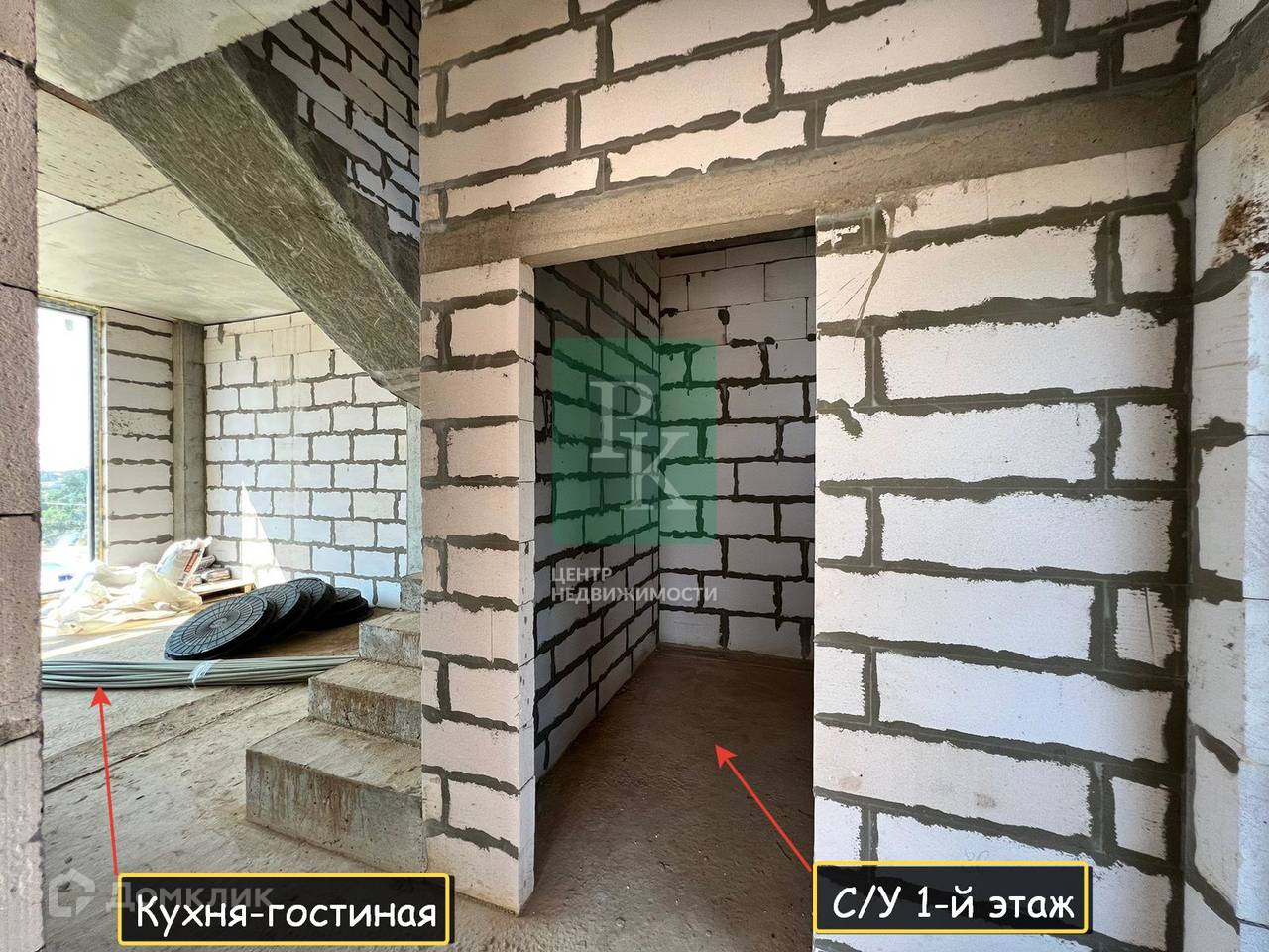 -1 этаж: прихожая, тех помещение, санузел, кухня-гостиная