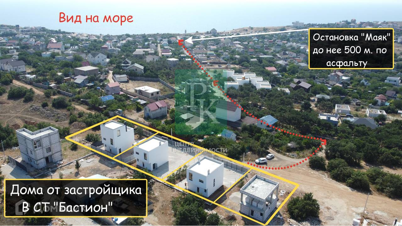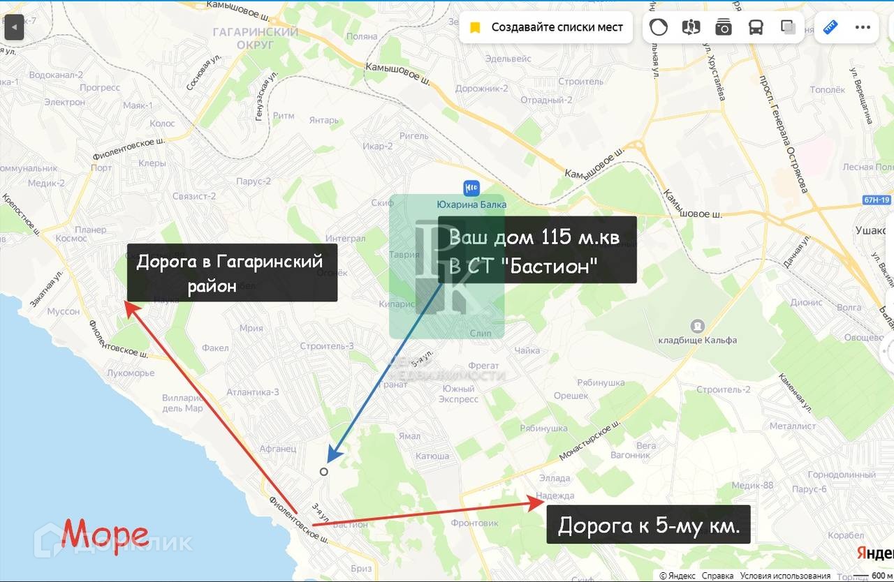 Дом 113 м2 на участке 4 сотки, двухэтажный. Расположен в г. Севастополь, Гагаринский район, СТ “Бастион”. Коммуникации: 15 кВт электричество, водоснабжение городское, отопление электрическое, канализация септик.