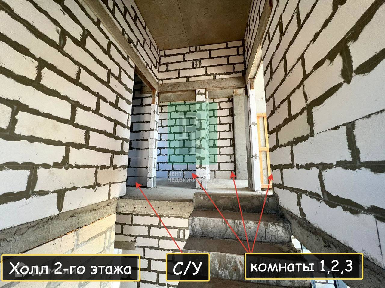 -2 этаж: санузел, три комнаты