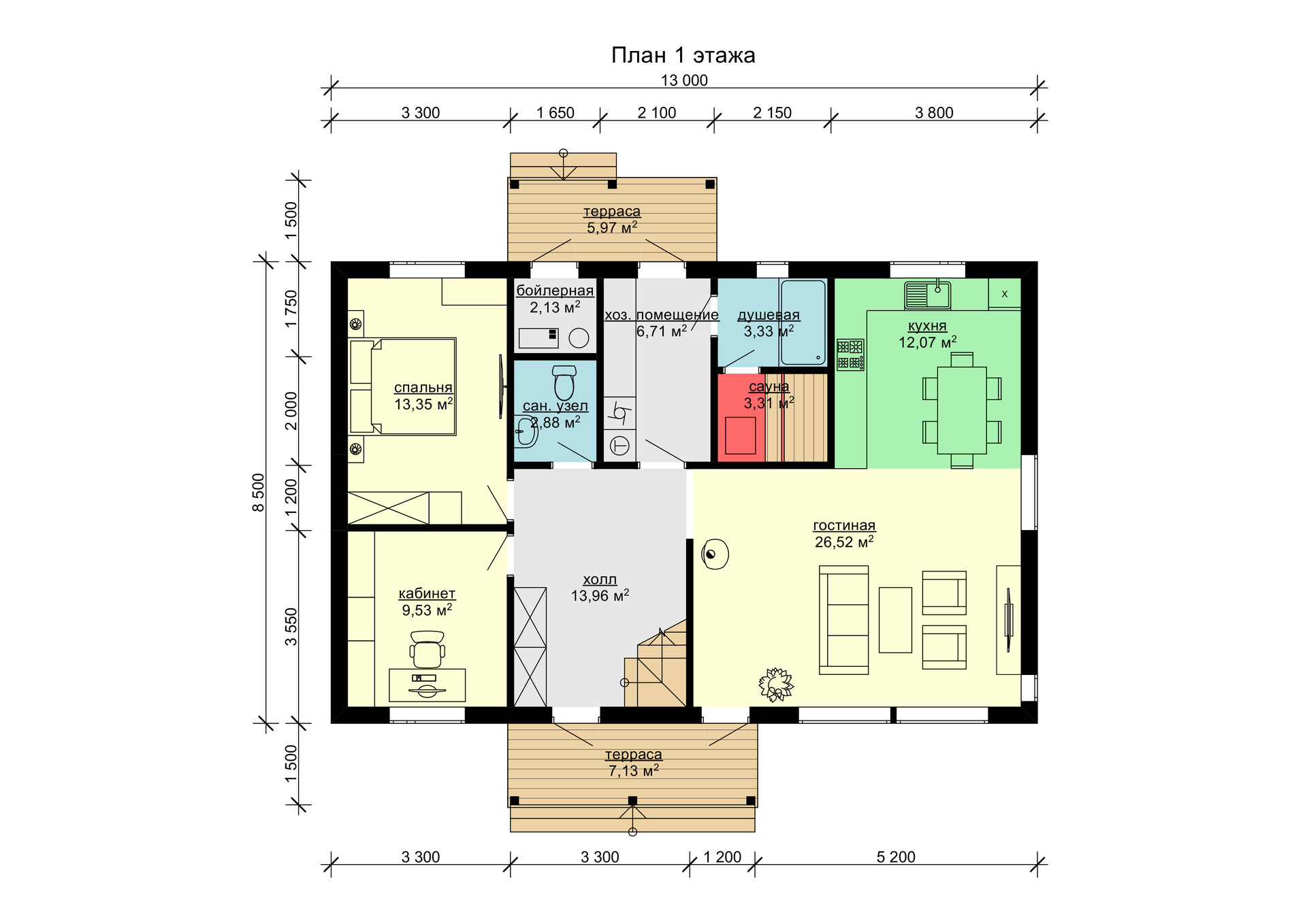 •    стропильная конструкция: доска строганная камерной сушки