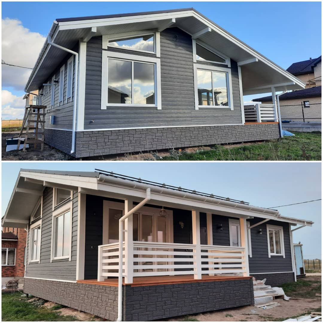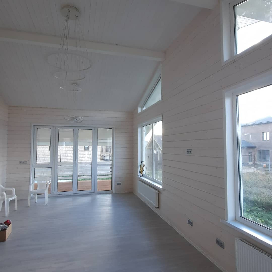 Каркасный дом по Канадской технологии, площадь 90 кв. м, фундамент - утепленная ж/б плита с устройством внутрипольного отопления и полусухой стяжки. Крыша металлочерепица. Двухкамерные стеклопакеты. Полная наружная и внутренняя отделка. Электромонтажные  работы. Отопление на базе электрокотла (водяные тёплые полы), водоснабжение, канализация (локальное очистное сооружение).