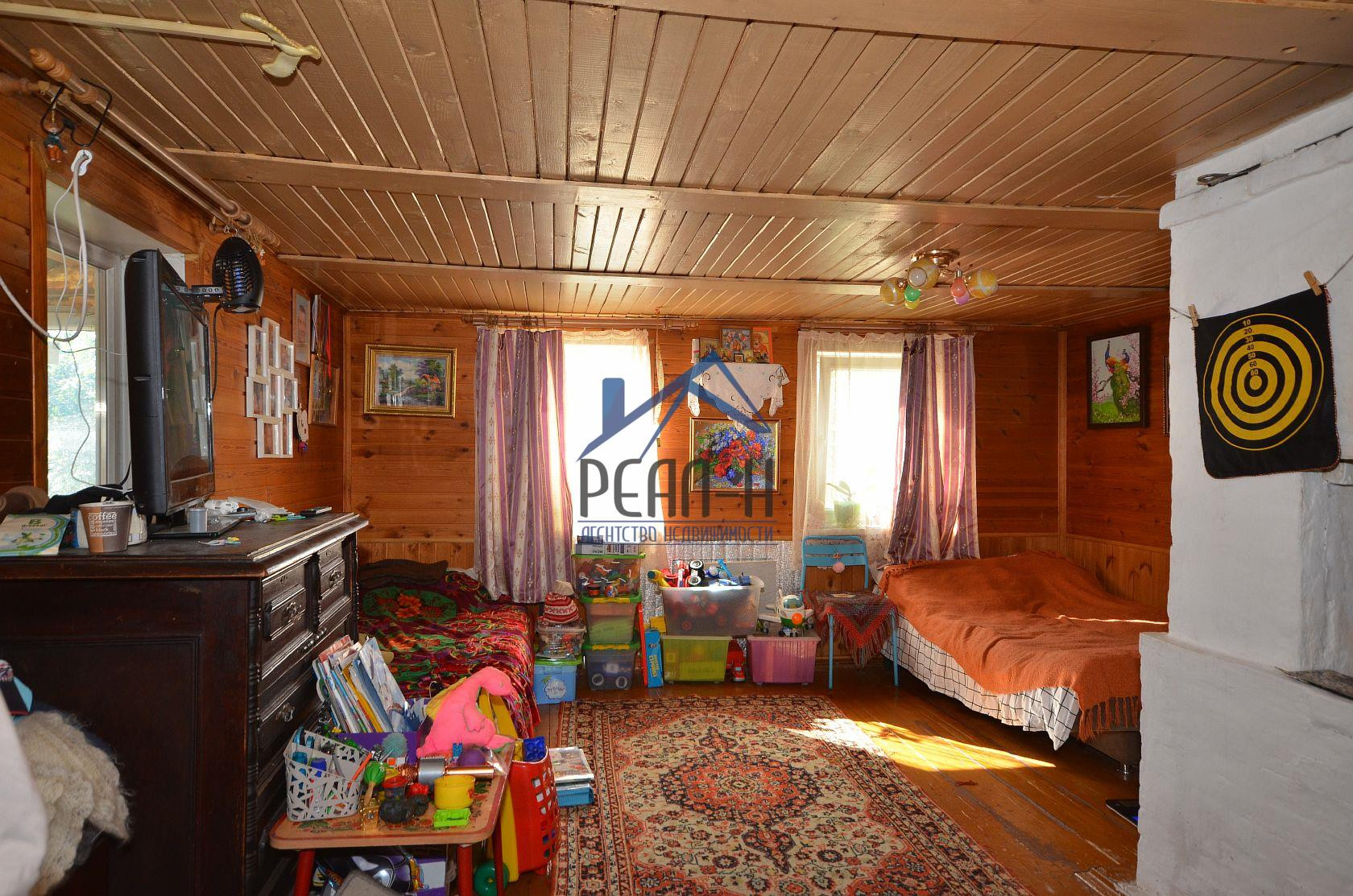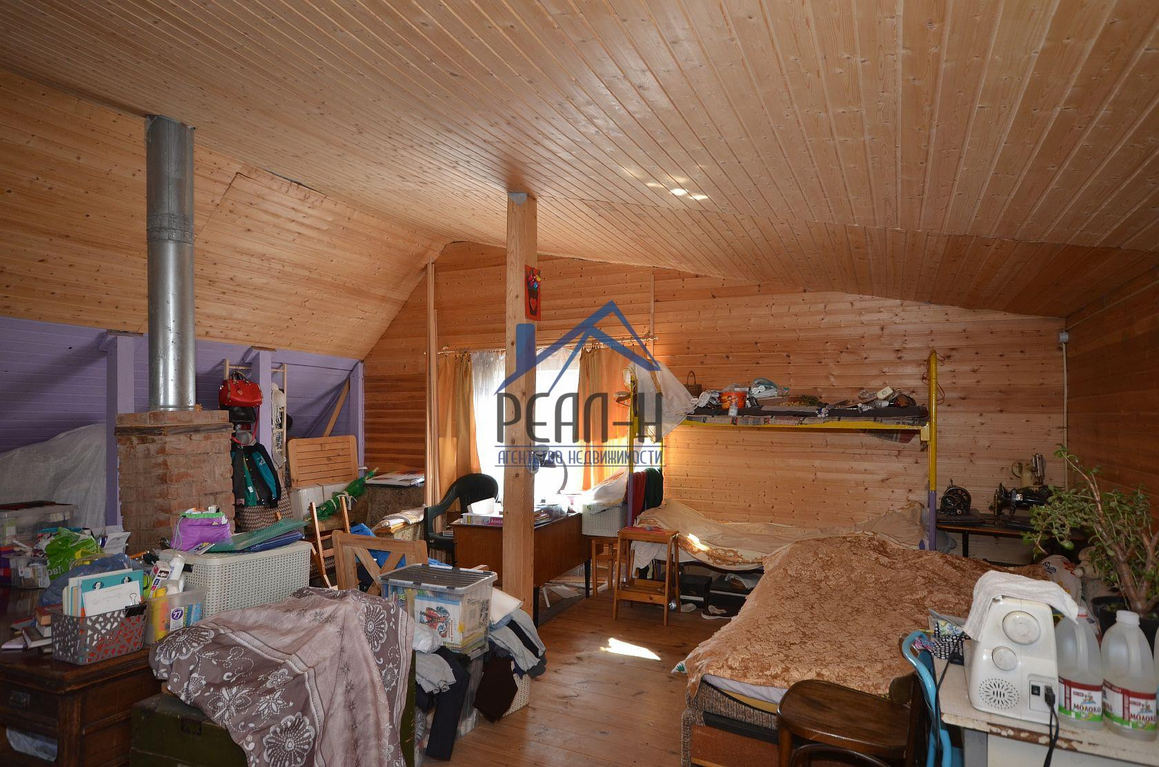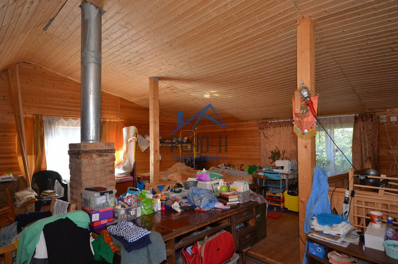 На 1-ом этаже, застекленная веранда, кухня, большая комната с кирпичной печкой, спальня, санузел с лестницей на второй этаж.