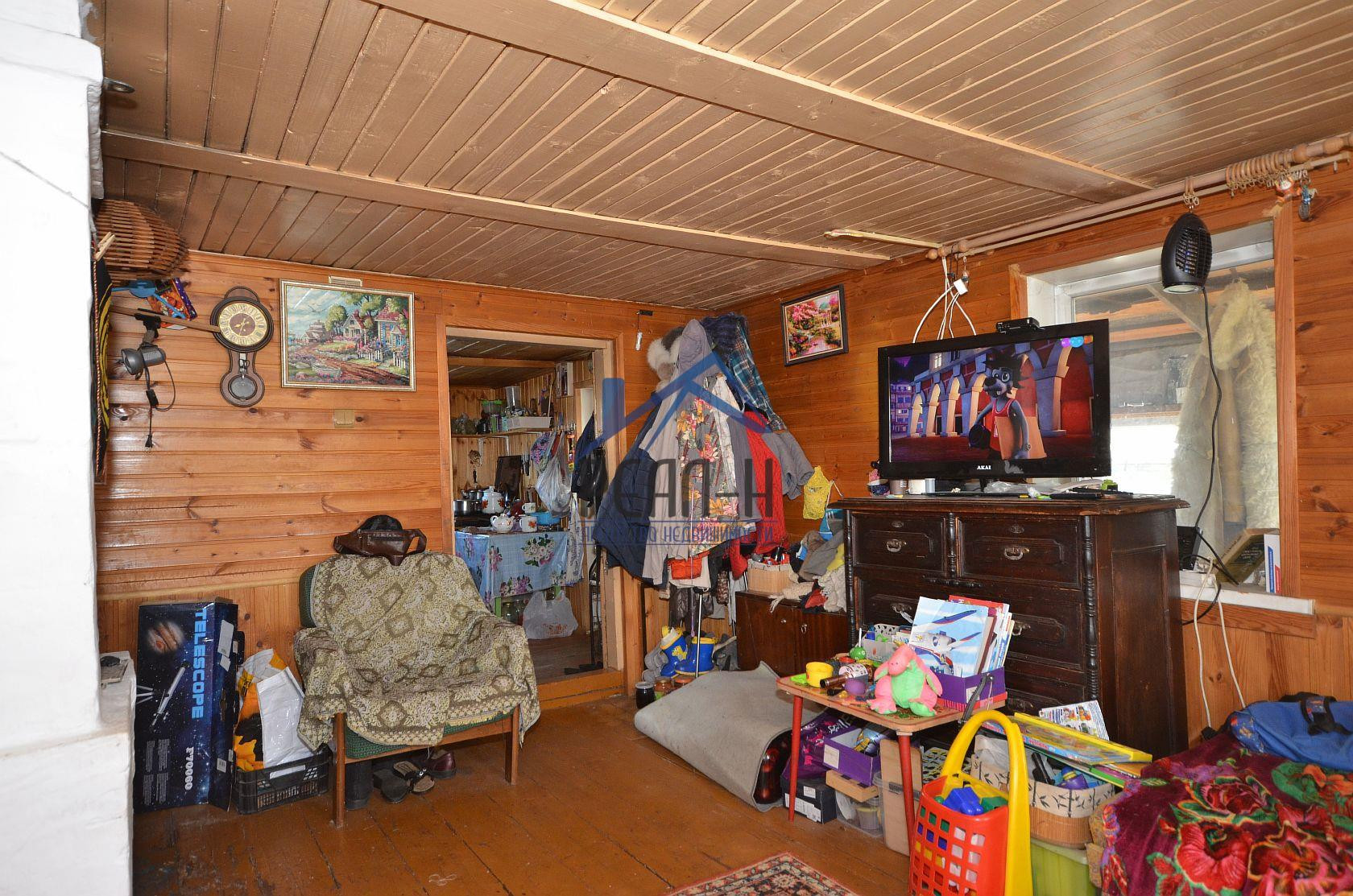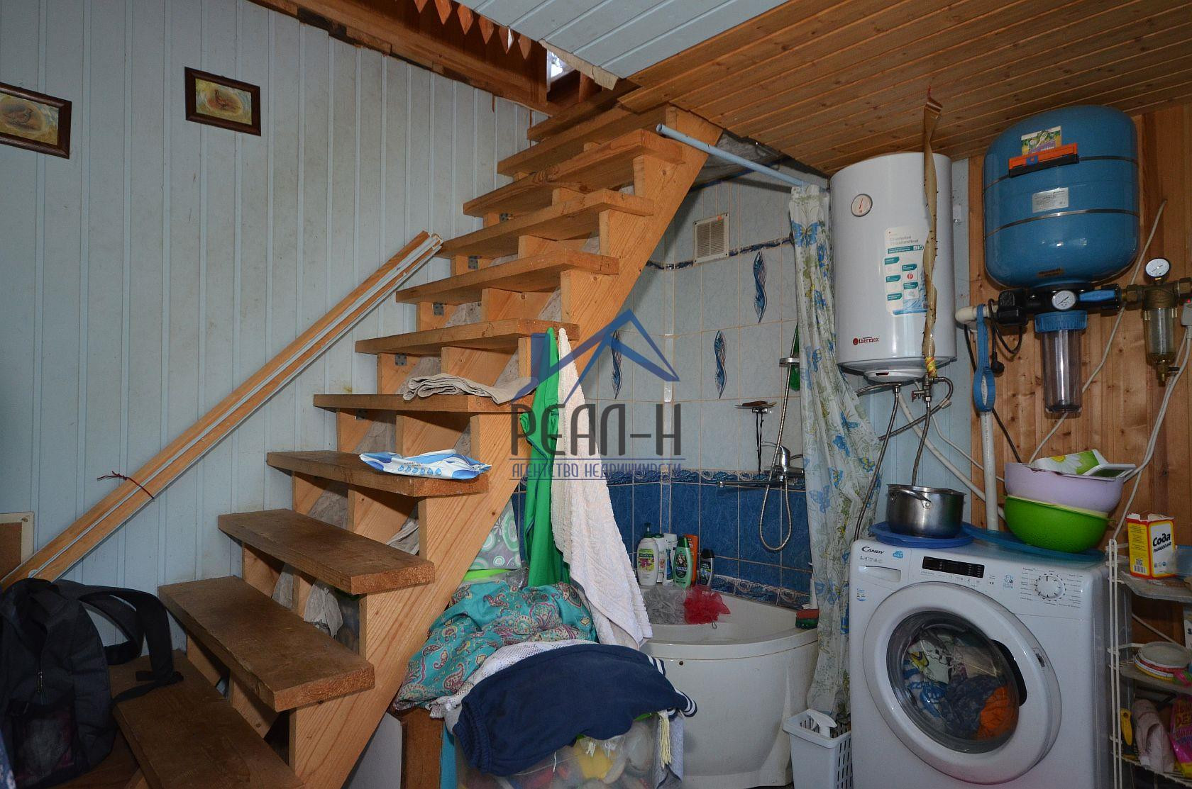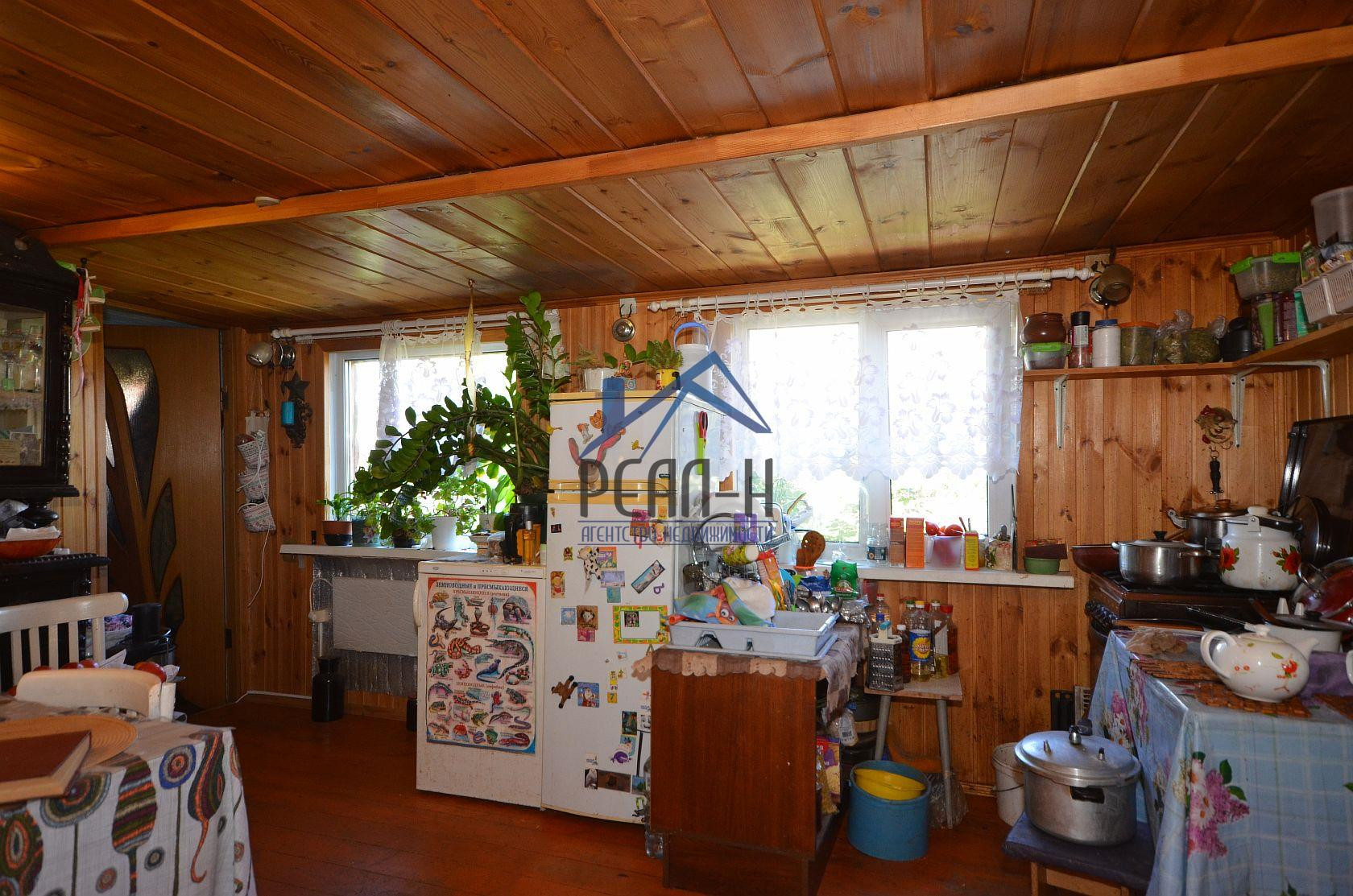 На 1-ом этаже, застекленная веранда, кухня, большая комната с кирпичной печкой, спальня, санузел с лестницей на второй этаж.