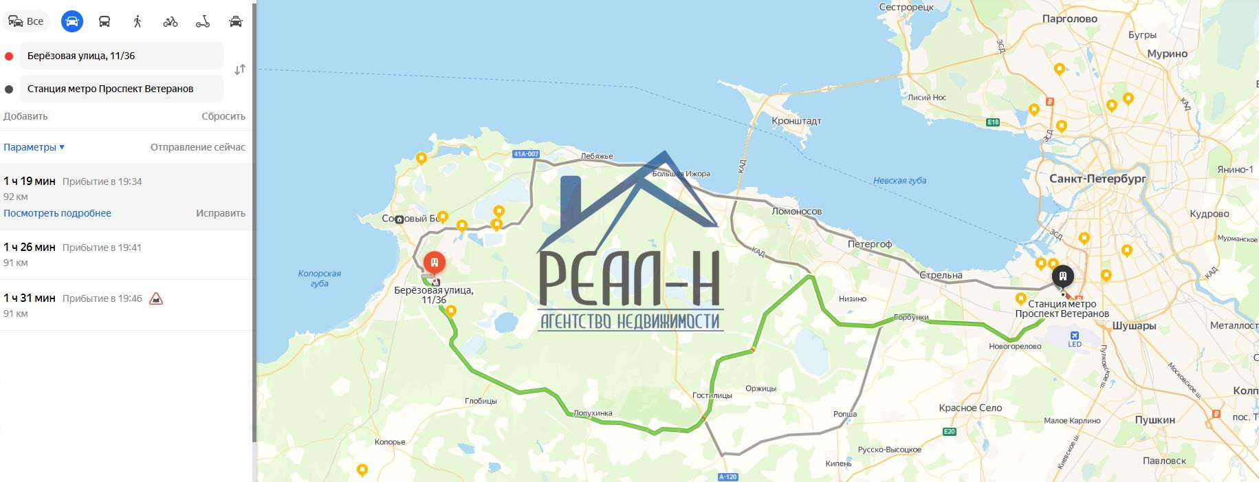 До м. Пр Ветеранов 92 км. (1:20 на машине, направление без пробок!).