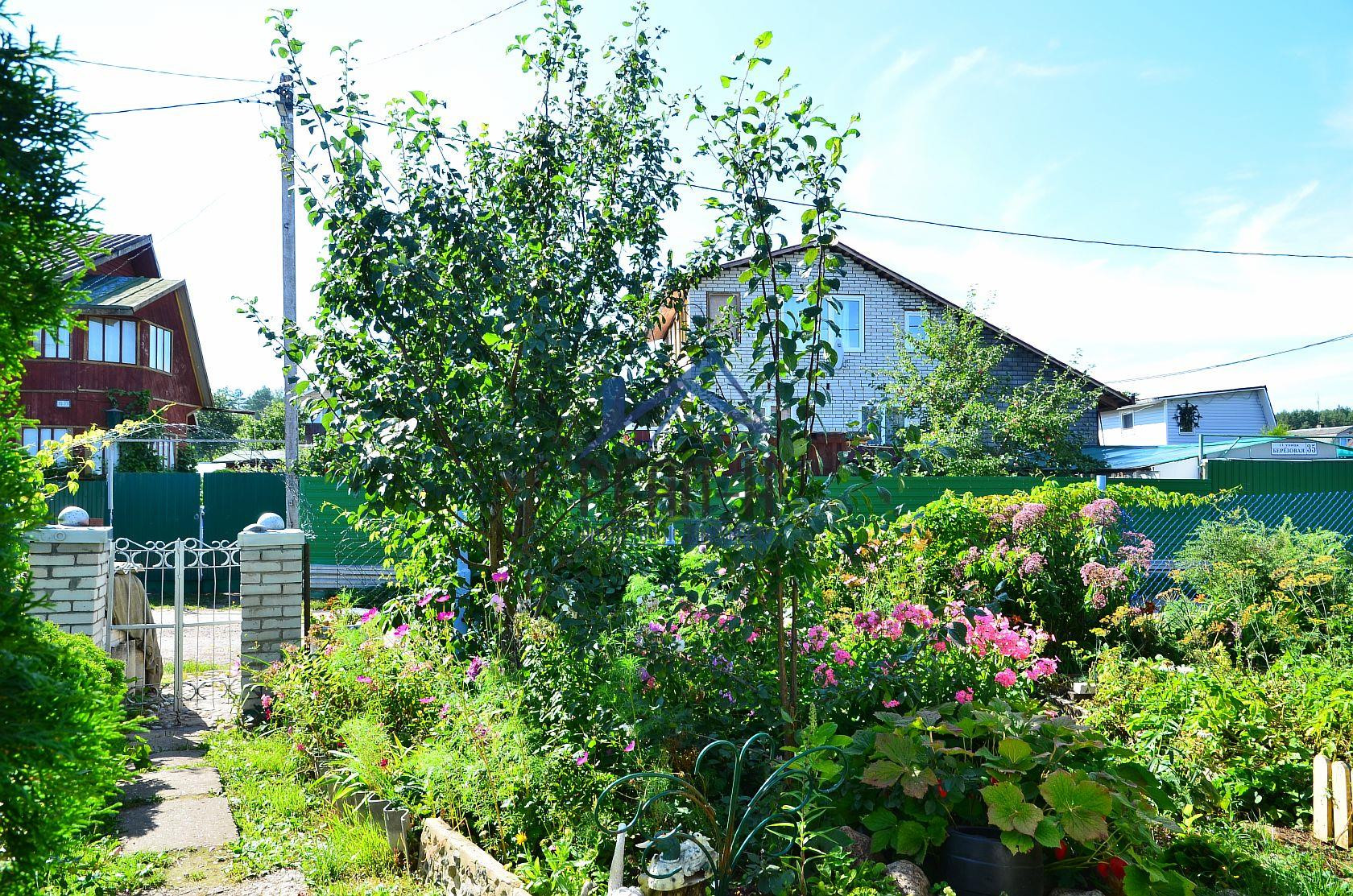 Участок полностью ухожен, имеются плодовые и декоративные растения, клумба с цветами.
