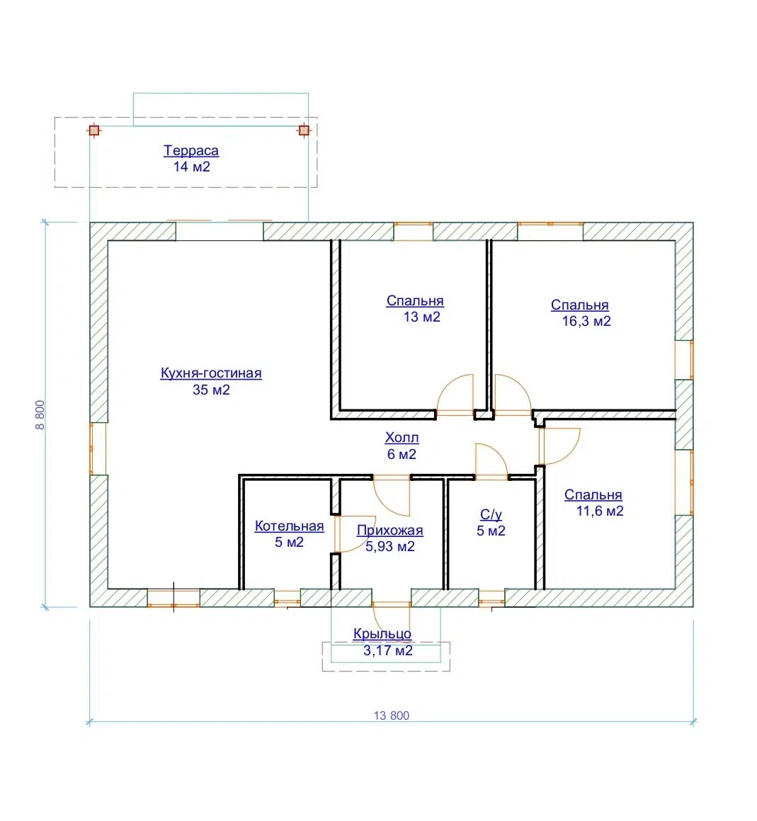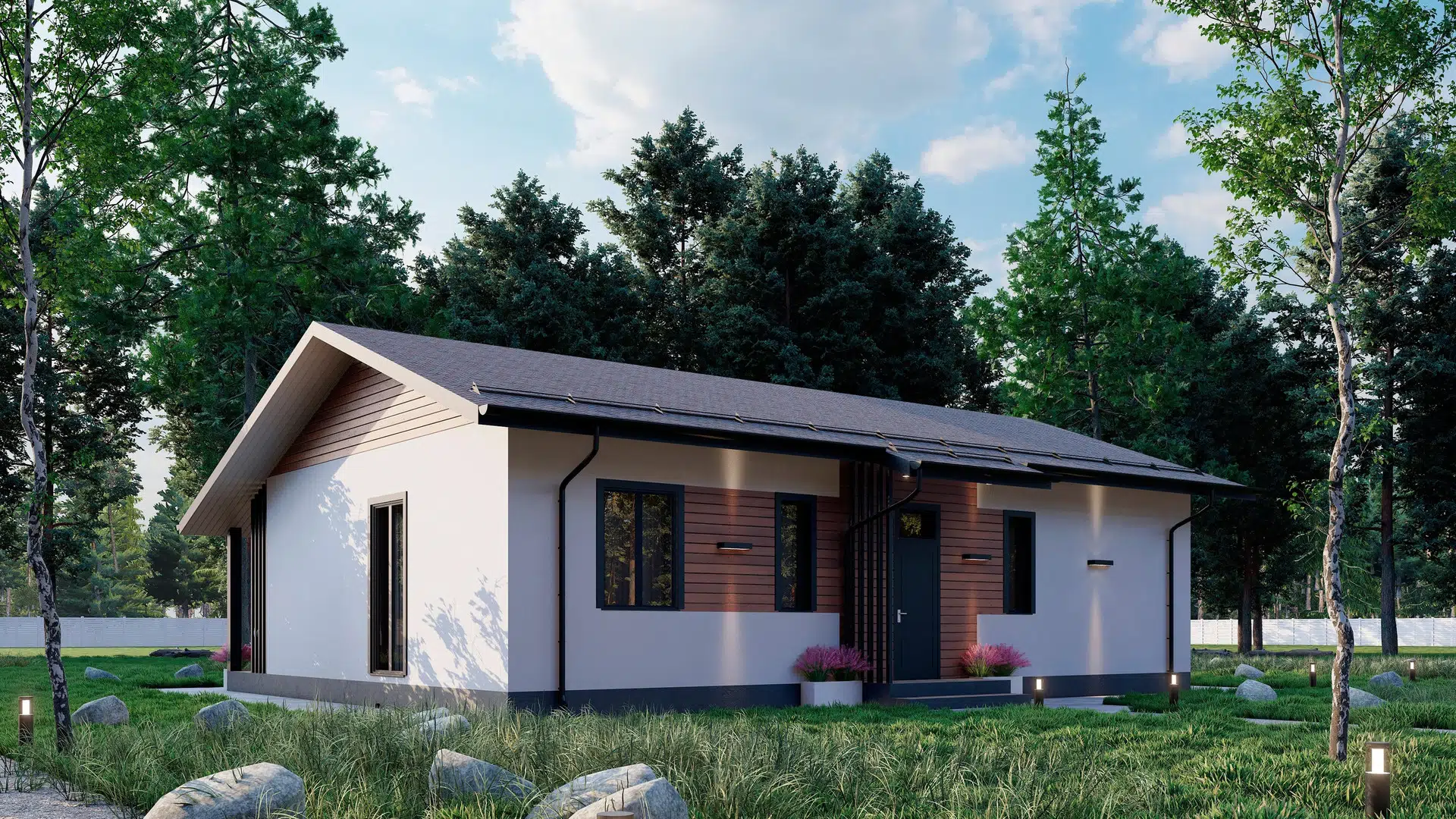 Одноэтажный небольшой дом с террасой, идеально подходящий для семейной пары или семьи с 1-2 детьми. Покупка возможна в ипотеку, в том числе по льготной ставке 6%. Ипотека также предполагает покупку участка.