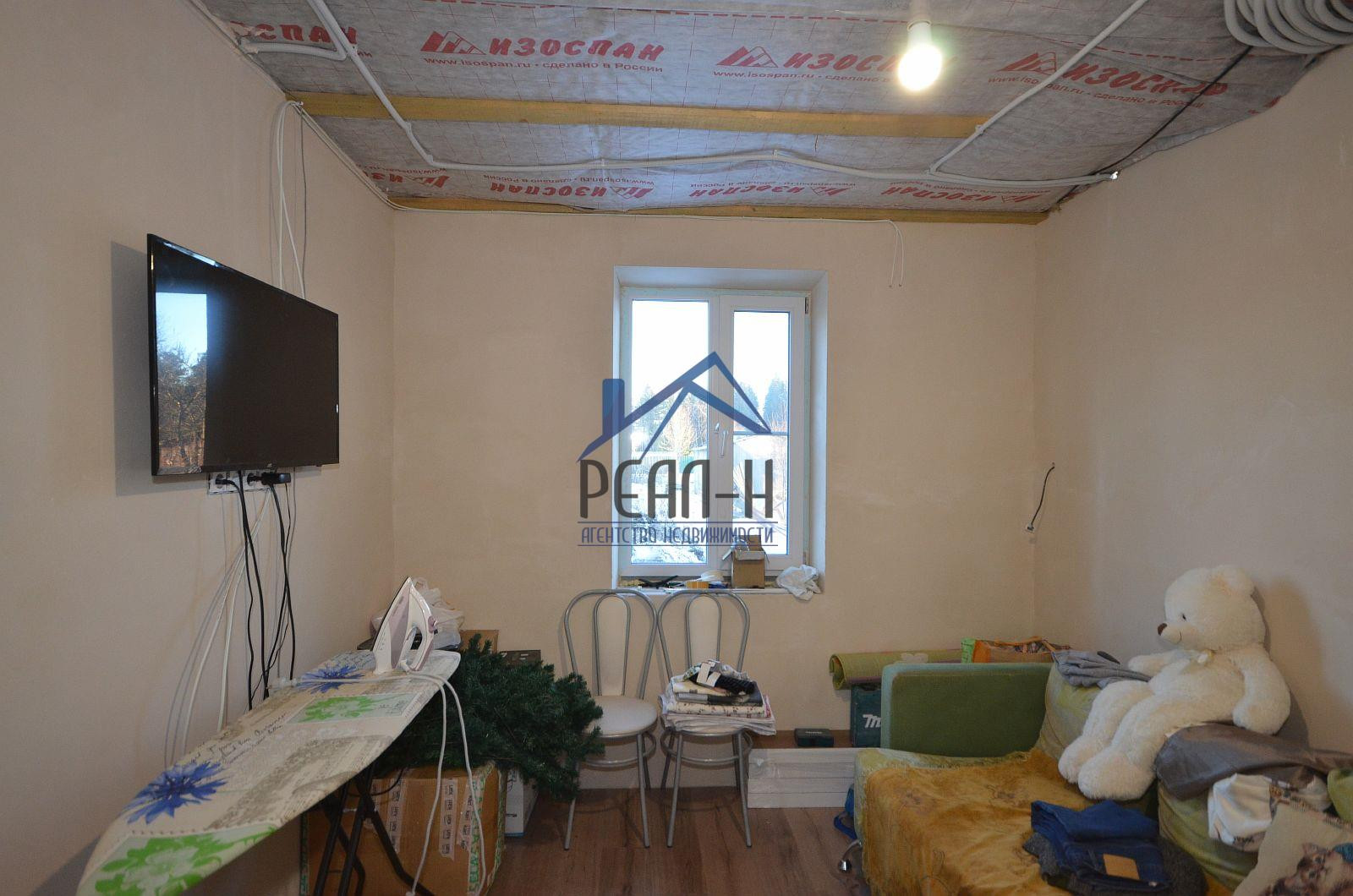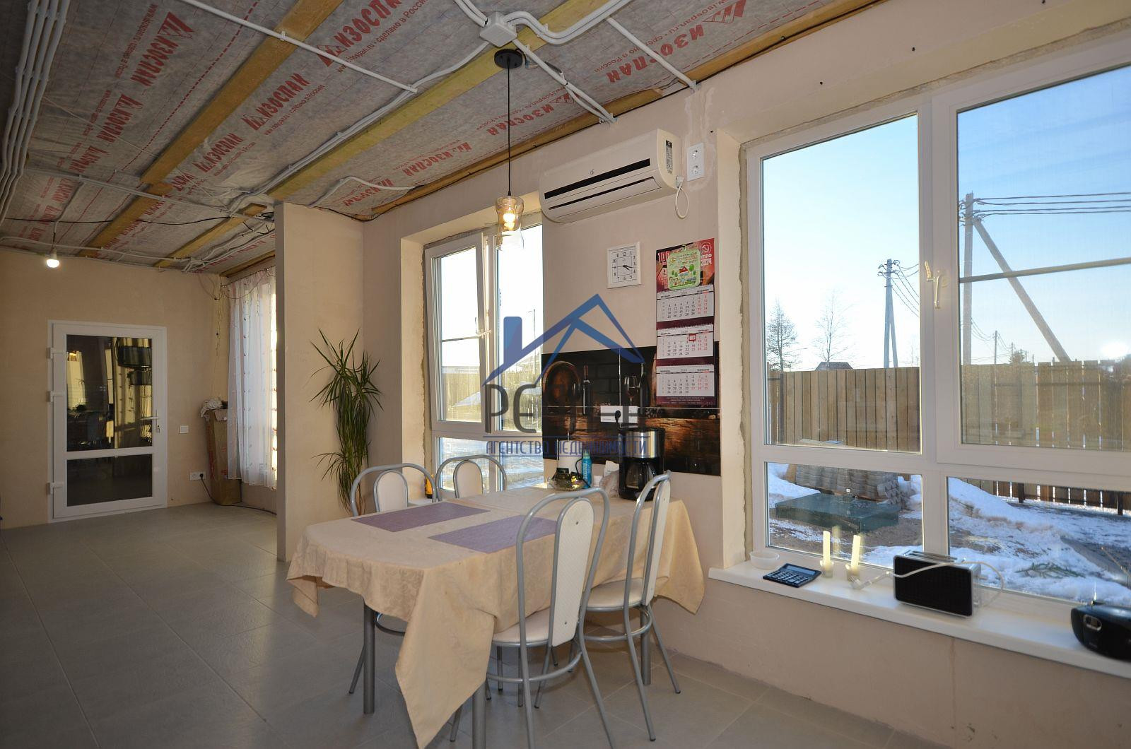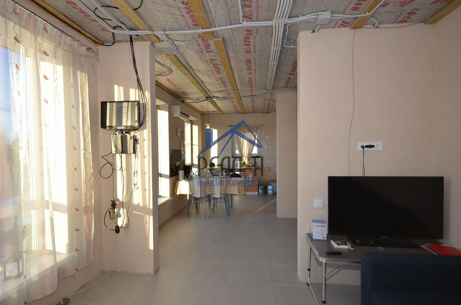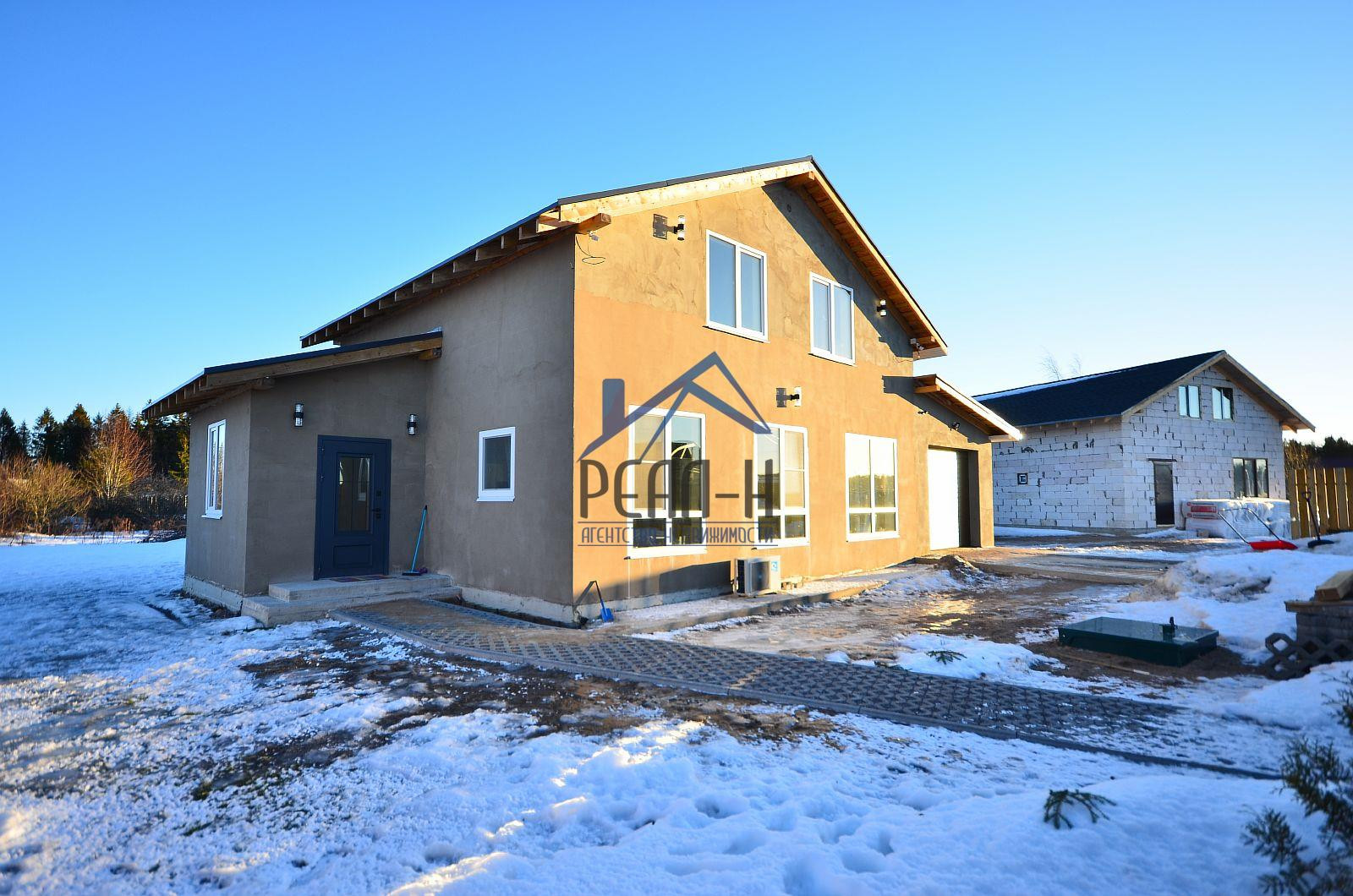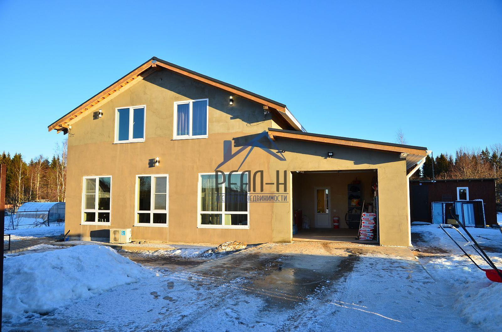 С наружи отделан фасадным клеем на сетку. Большая часть внутренних работ выполнена (имеется много строительных материалов для дальнейшей внутренней отделки).