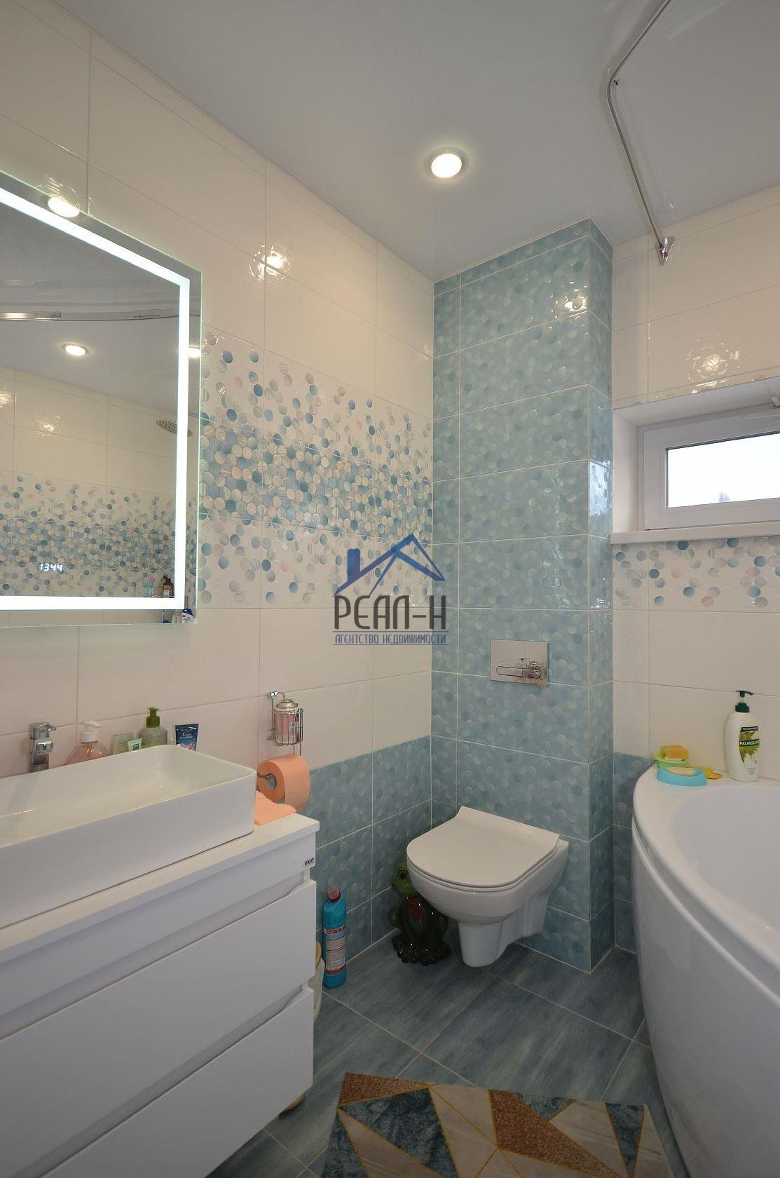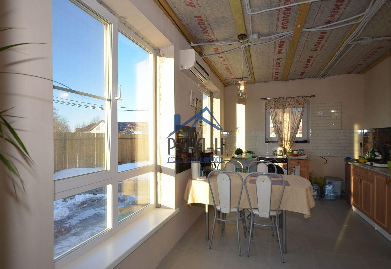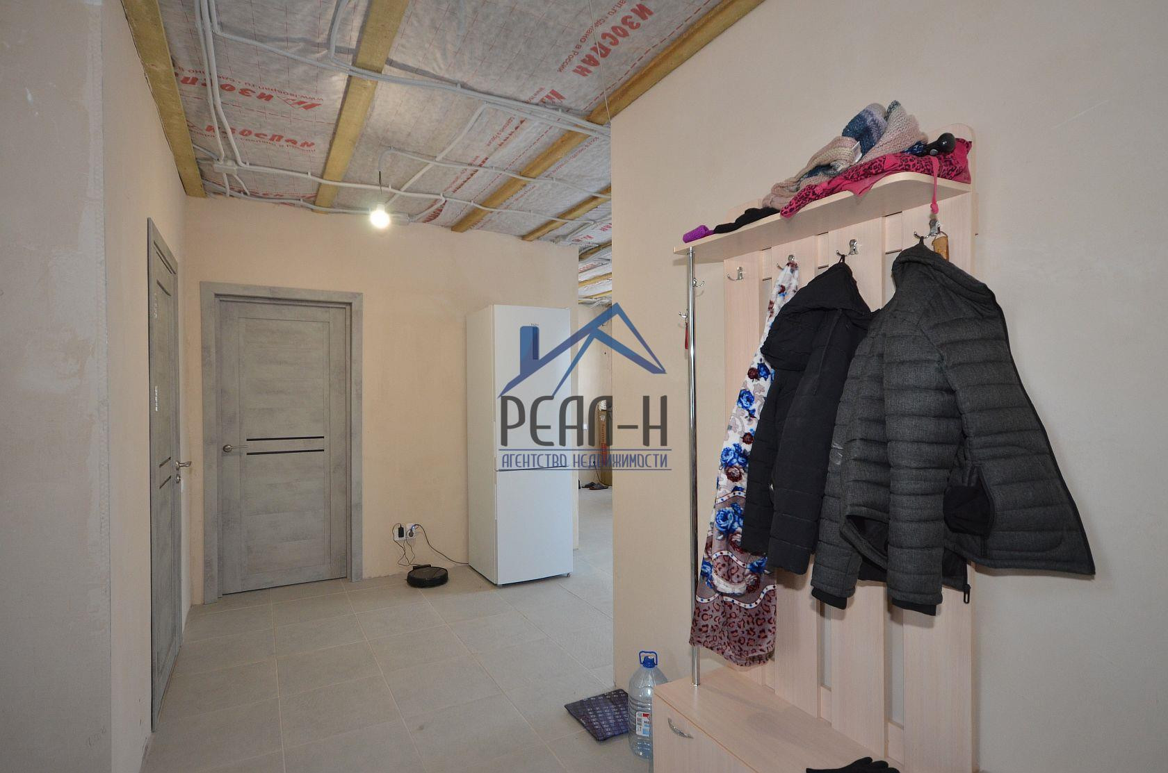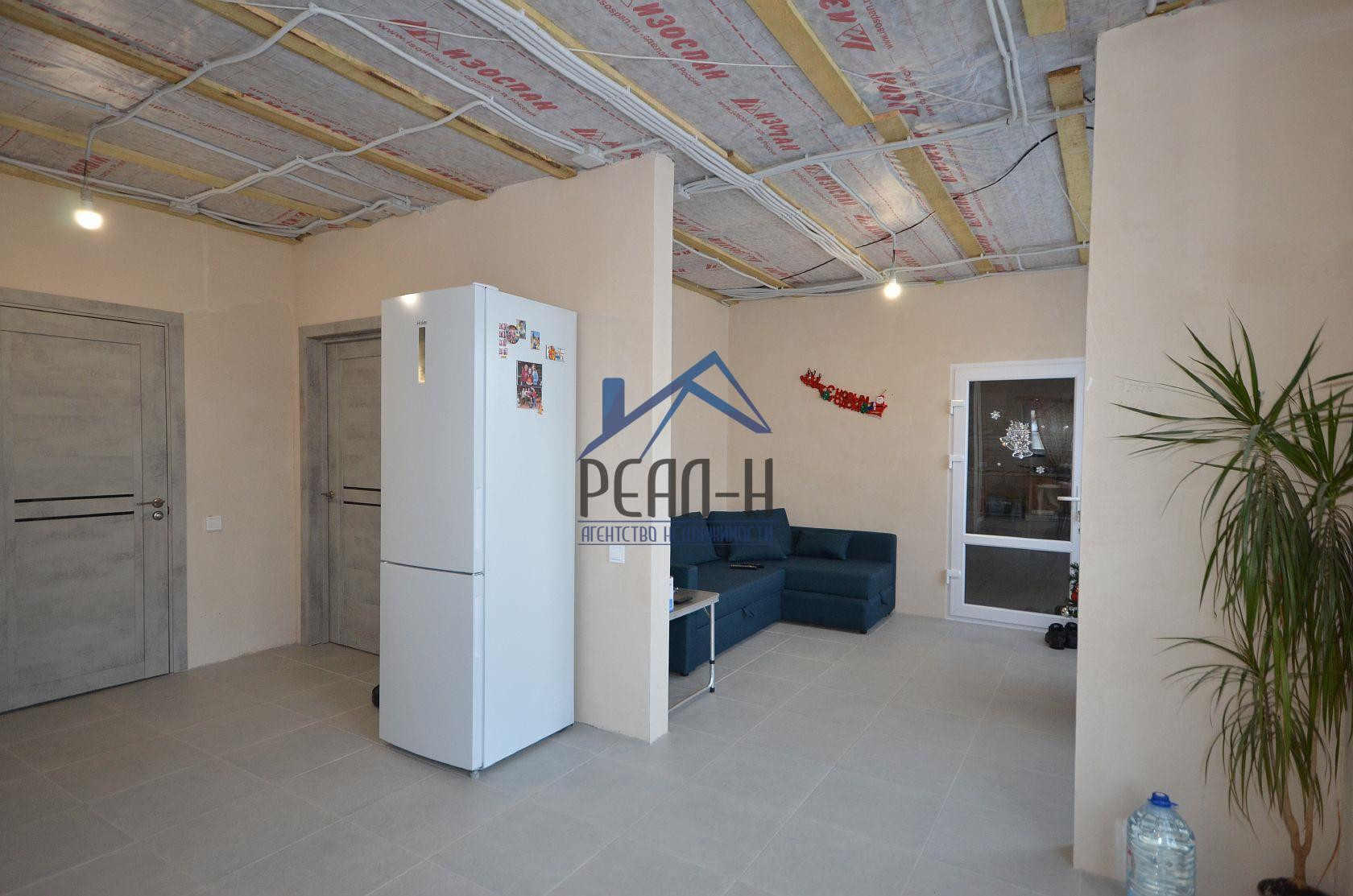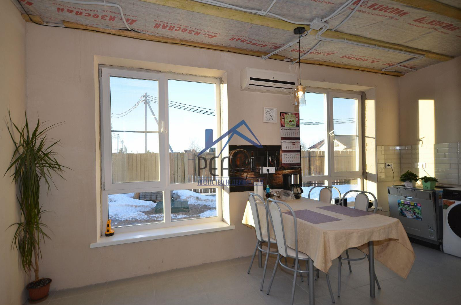 С наружи отделан фасадным клеем на сетку. Большая часть внутренних работ выполнена (имеется много строительных материалов для дальнейшей внутренней отделки).