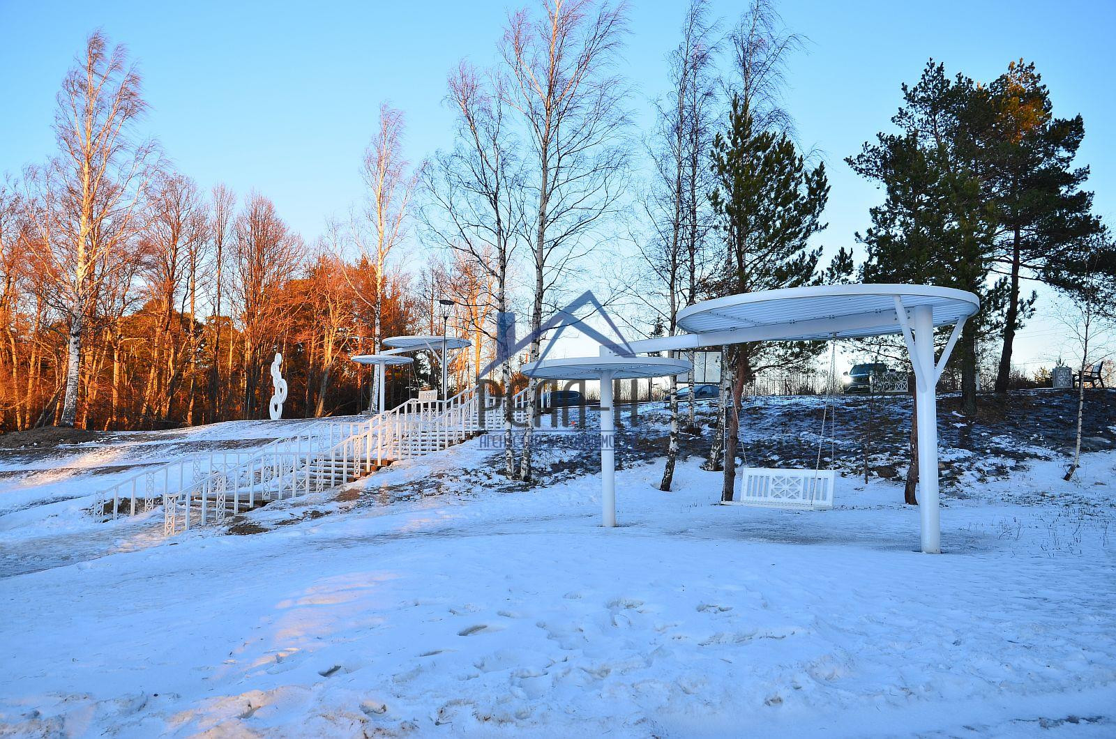 Вдоль пляжа проходит велодорожка, ведущая к парку Приморский. Приморский парк — одна из жемчужин Соснового Бора. Это комфортное пространство для активного отдыха, культурного времяпровождения, семейных прогулок и фотосессий.