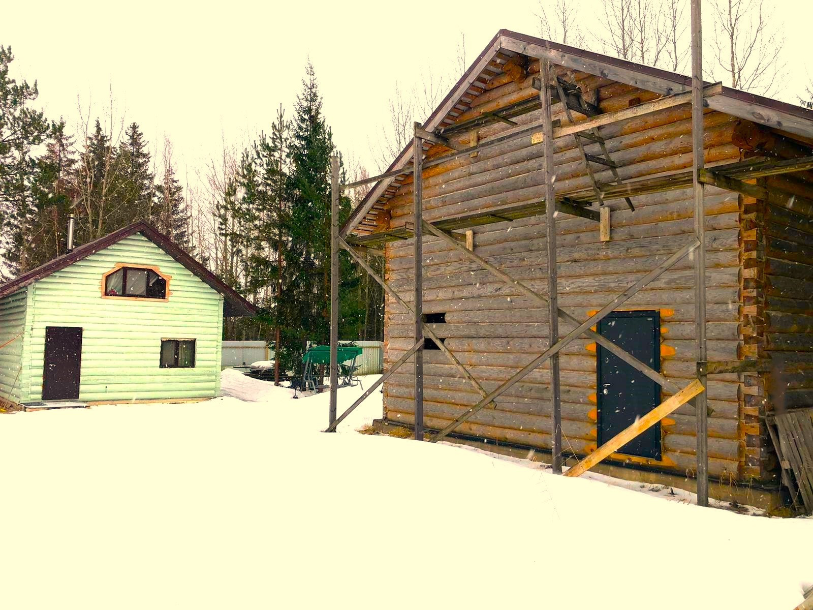 ДОМА срублены ИЗ ЗИМНЕГО ЛЕСА! Специально покупали делянку! Бревна 24-28СМ В СЕЧЕНИИ.  Рубила профессиональная бригада из Пскова.