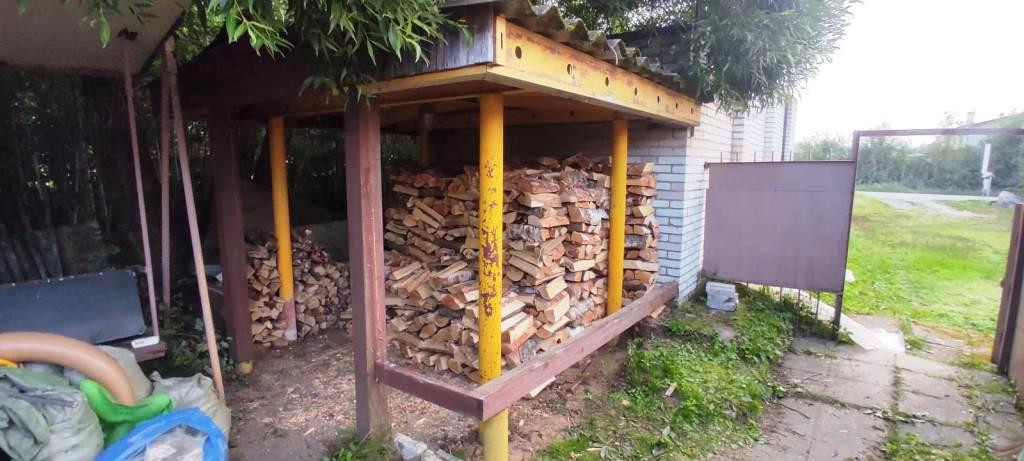 Дом выполнен из бруса, облицован кирпичом и сайдингом. Есть три комнаты, кухня, веранда. Так же имеются две печки и камин.