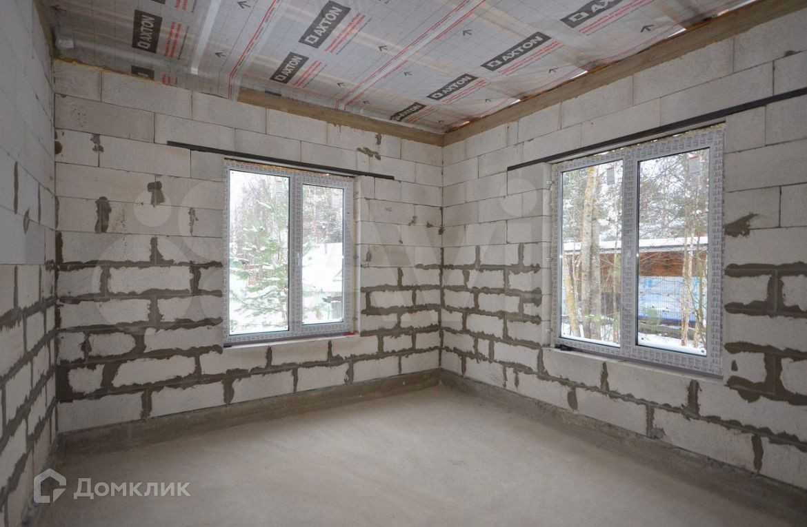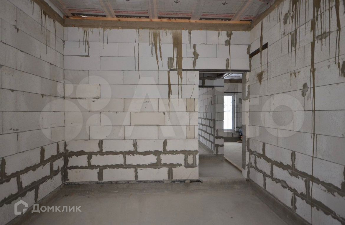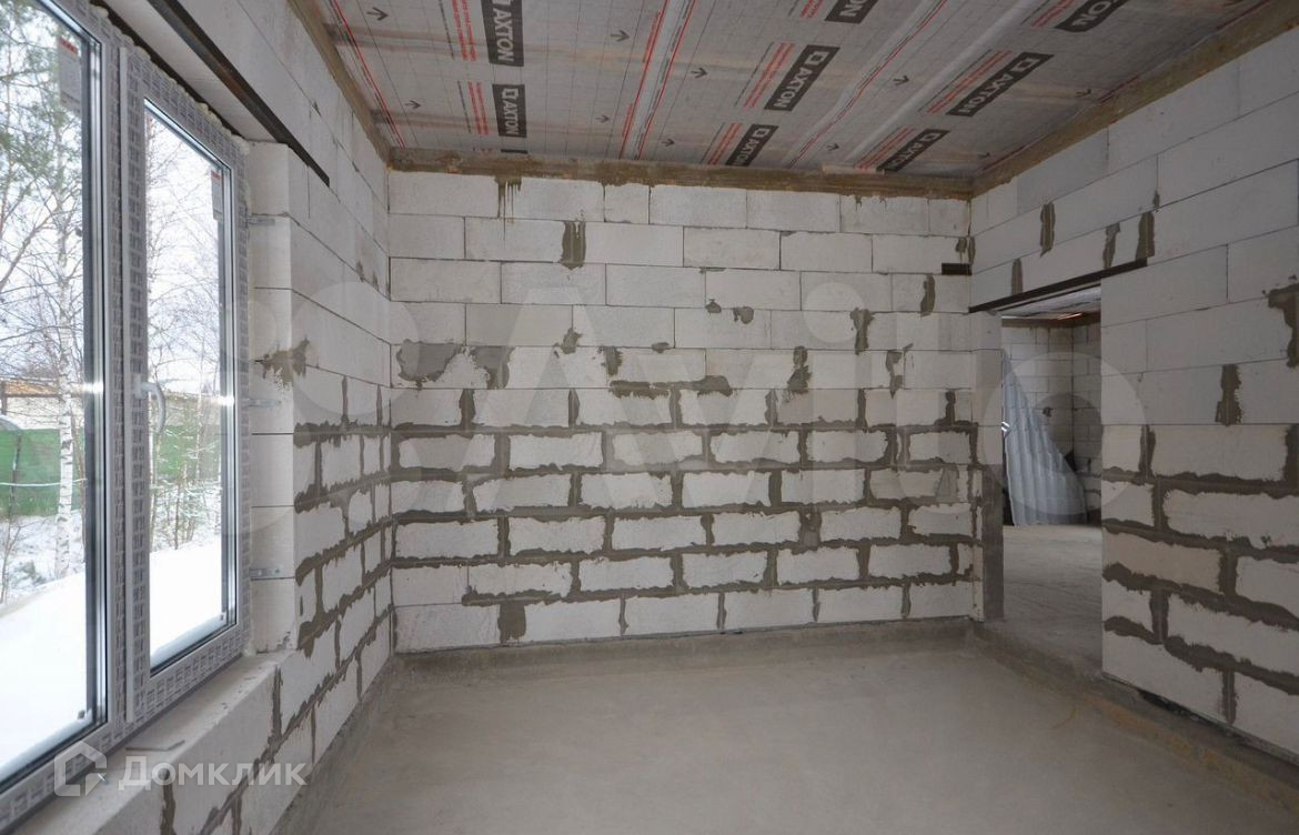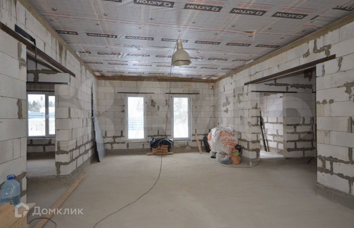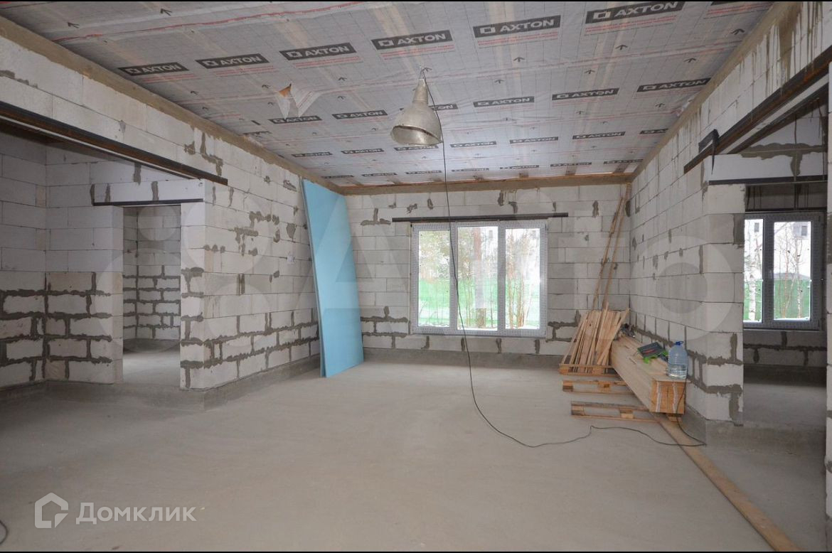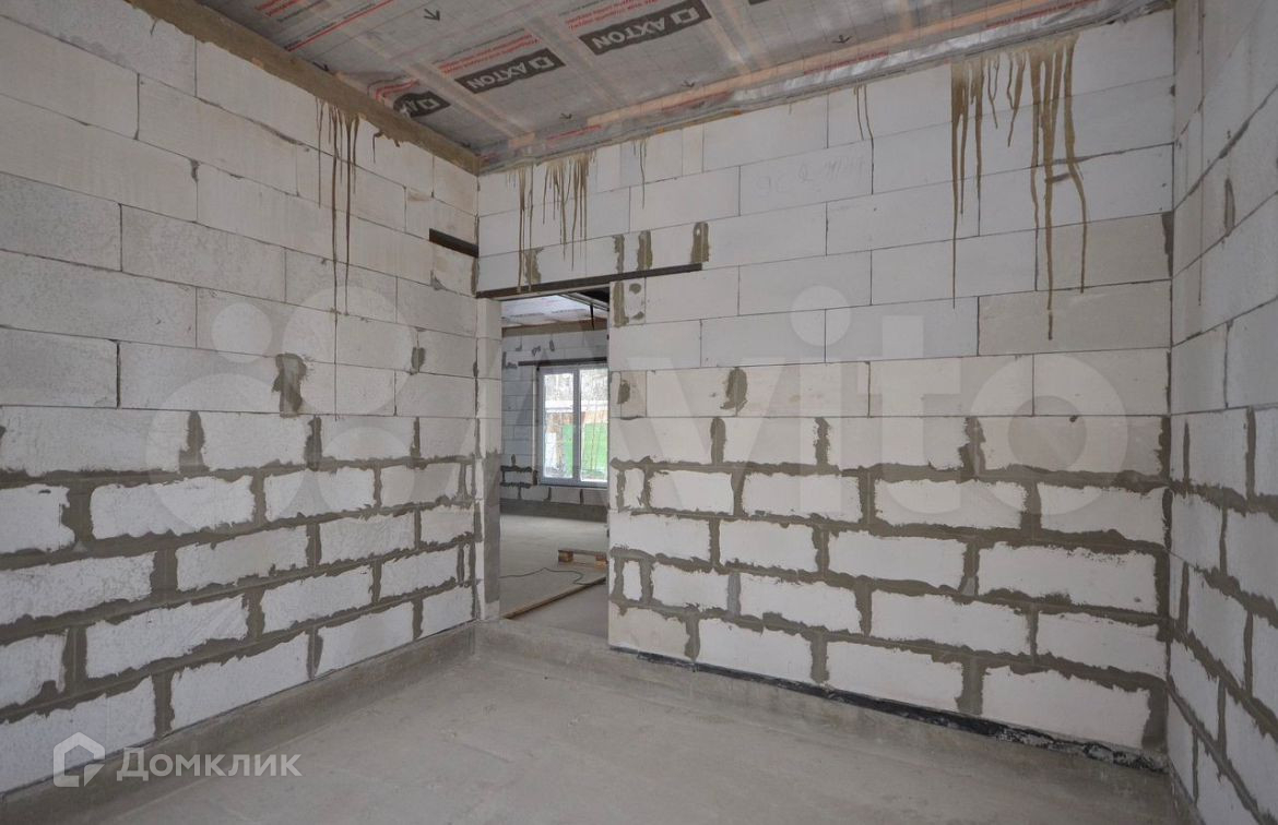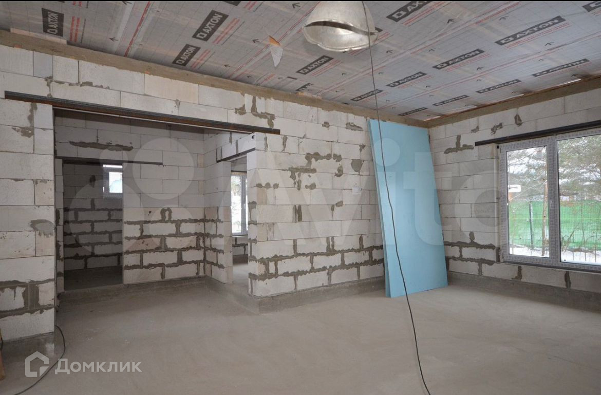 Дом построен из газобетона 200 мм. Двухкамерные стеклопакеты. Металлическая входная дверь с терморазрывом. Кровля - металлочерепича. Фундамент - монолитная плита 200 мм с ростверком. Высота потолков 3.15 м., кухня - гостиная 51.5 кв.м., изолированный комнаты 16.3 кв.м. + 11.9 кв.м + 11.9 кв.м., два санузла 5.2 кв.м. + 4 кв.м., котельная 6.5 кв.м., тамбур 5.6 кв.м.  Газ по границе участка. Электричество 15 кВт. Сделаны технологические отверстия для ввода коммуникаций в дом (электричество, вода, канализация).