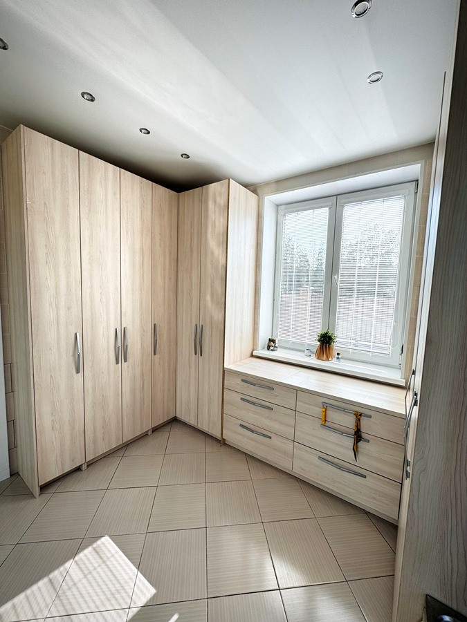 На первом этаже расположены: прихожая, кухня, просторная гостиная-столовая с камином, санузел, кабинет, котельная, постирочная. Из гостиной предусмотрен выход на оборудованную террасу. На втором этаже: холл, 3 спальни и 2 санузла, один из которых с джакузи, гардеробная.