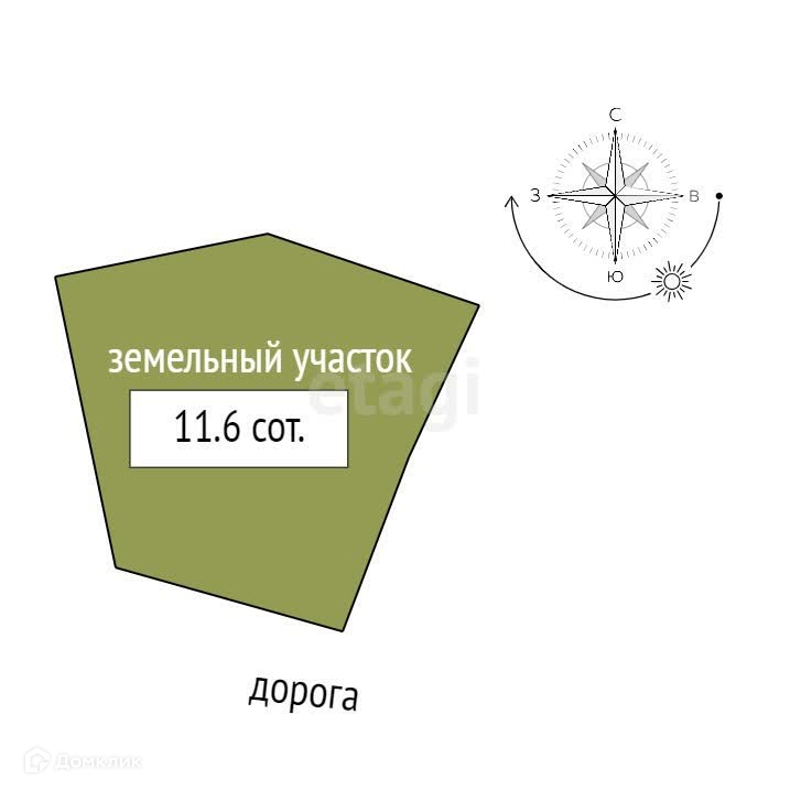 Площадь участка 11.6 сот.