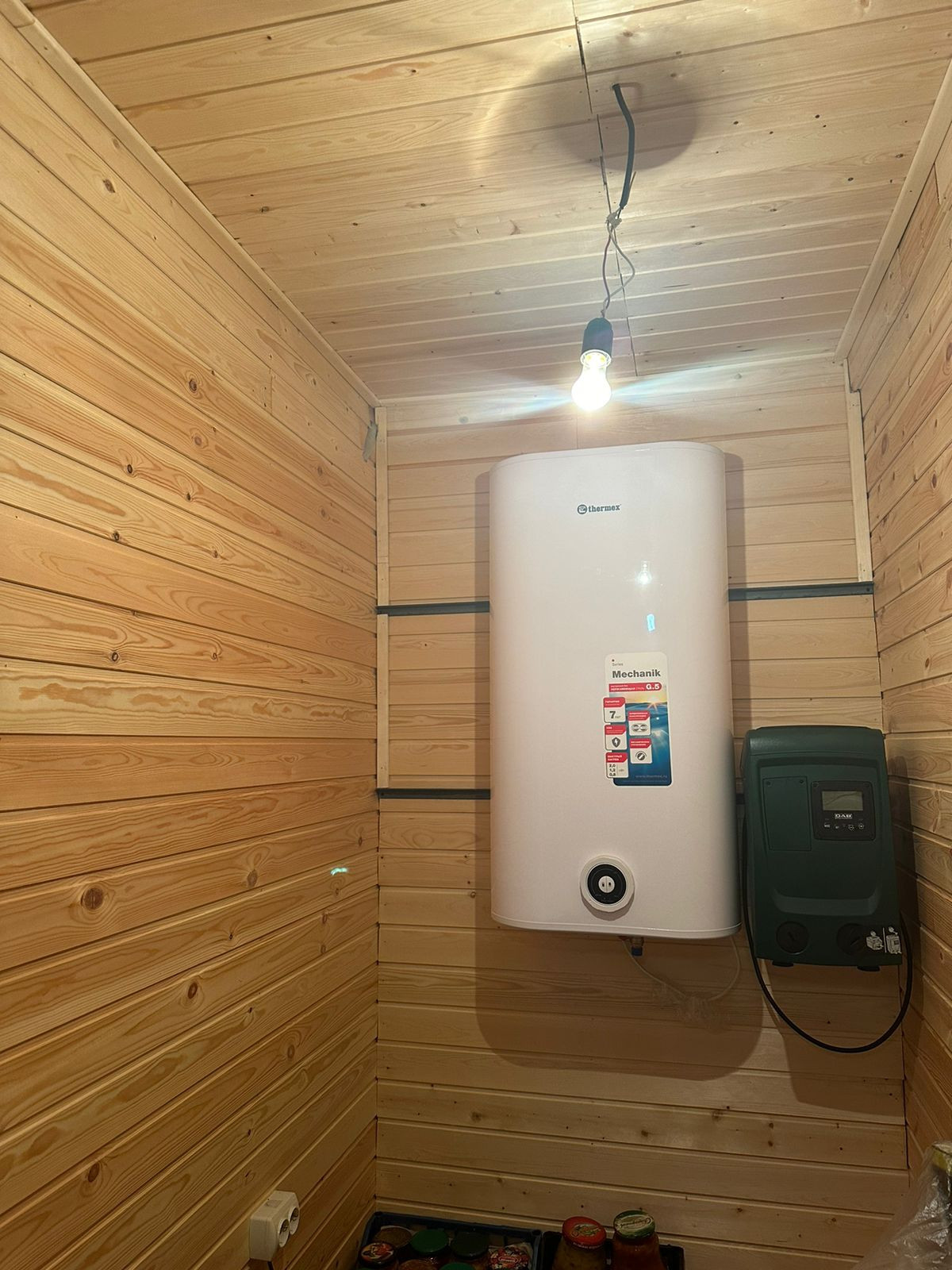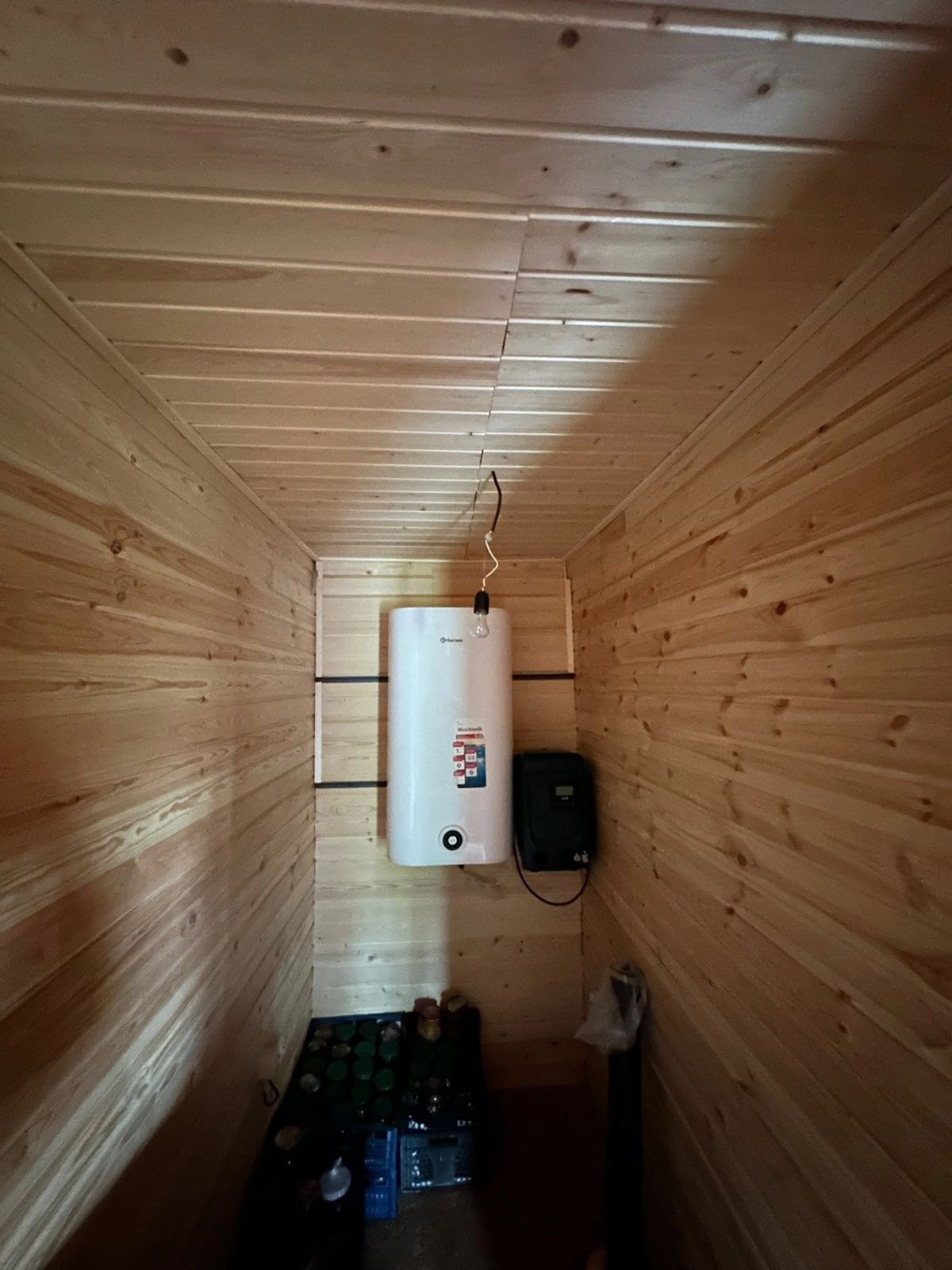 Установлен бойлер, туалет, раковина. Септик, трубы проведены, осталось  только подключить к дому.