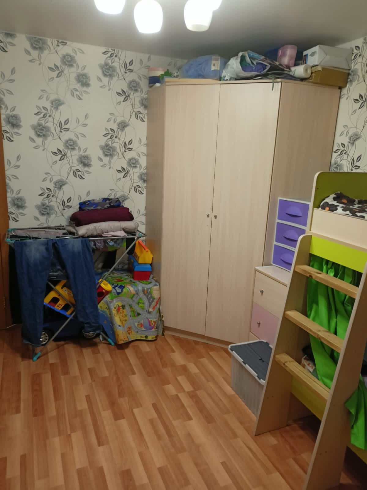 В продаже две комнаты в секции из четырех комнат. Комнату объединены в компактную двухкомнатную квартиру.