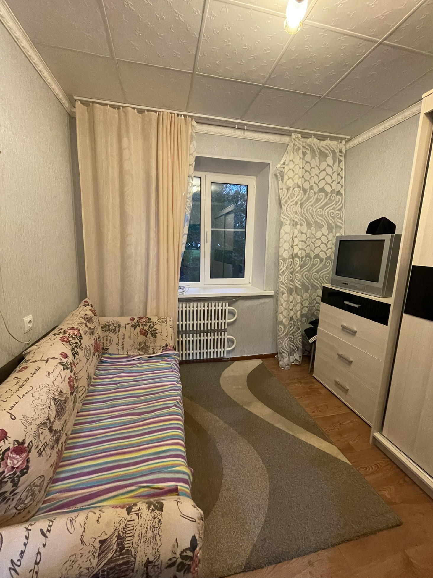 В квартире установлены стеклопакеты,батареи частично заменены.