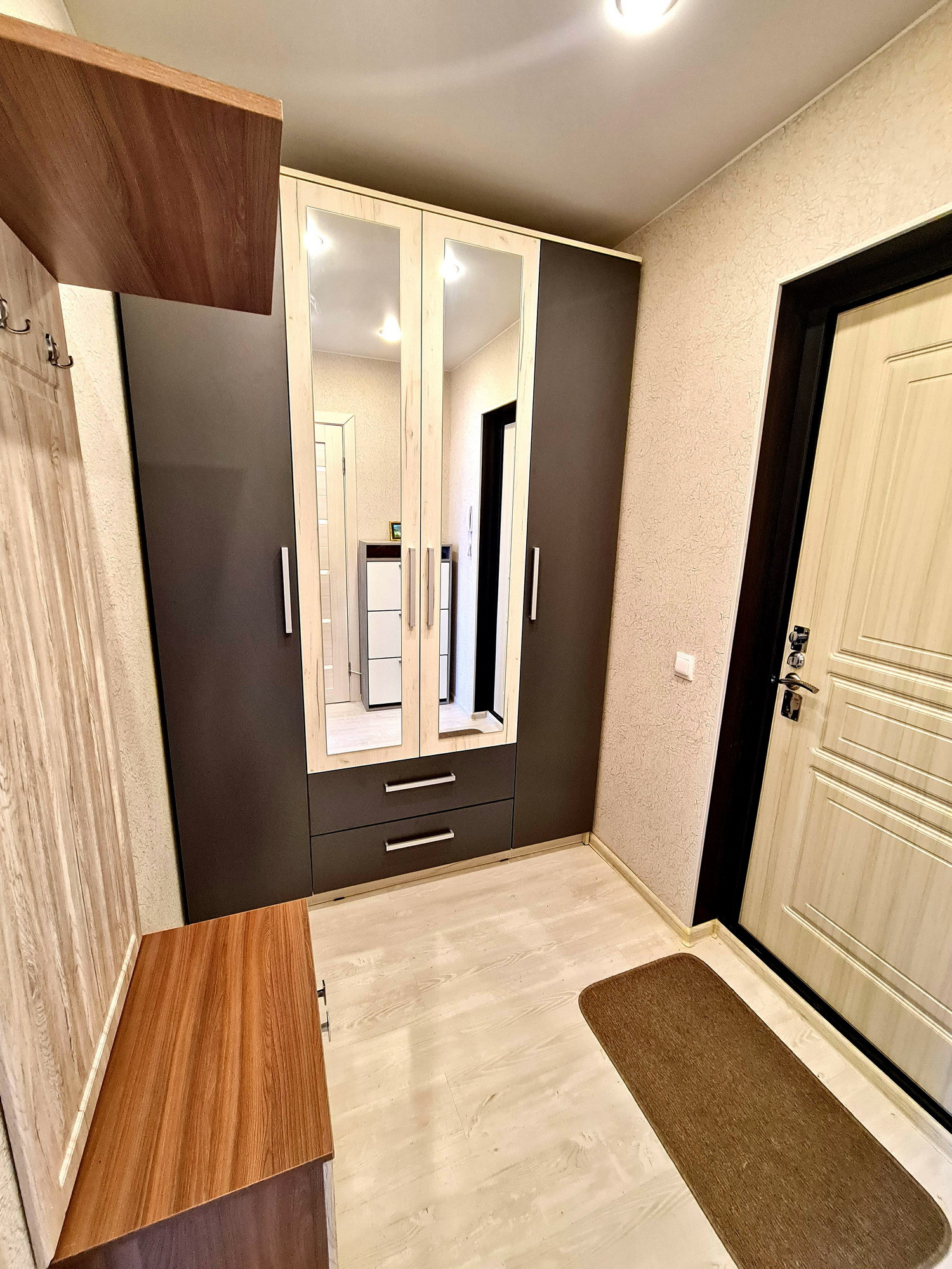 Квартира с ремонтом, есть застеклённая лоджия, совмещённый санузел и в подарок остаётся вся мебель и техника.