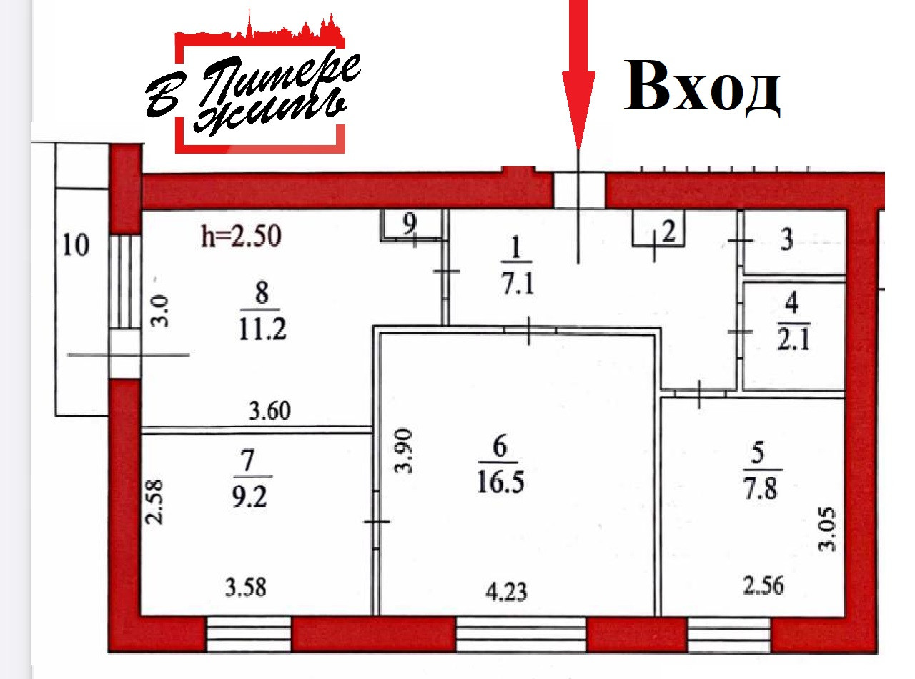 Высота потолков 2.5 м