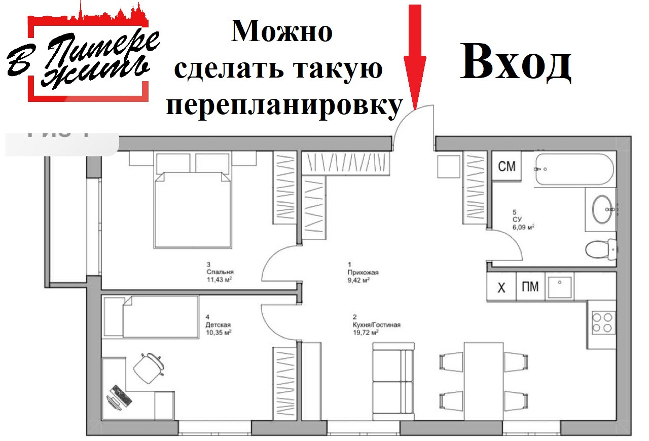 Общая площадь 56 м2