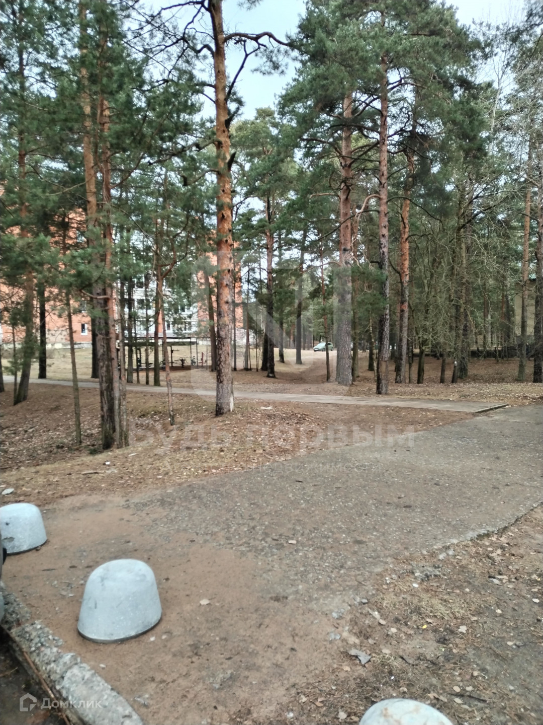 Во дворе сосньI, детская площадка, площадка с тренажерами и детским садом.