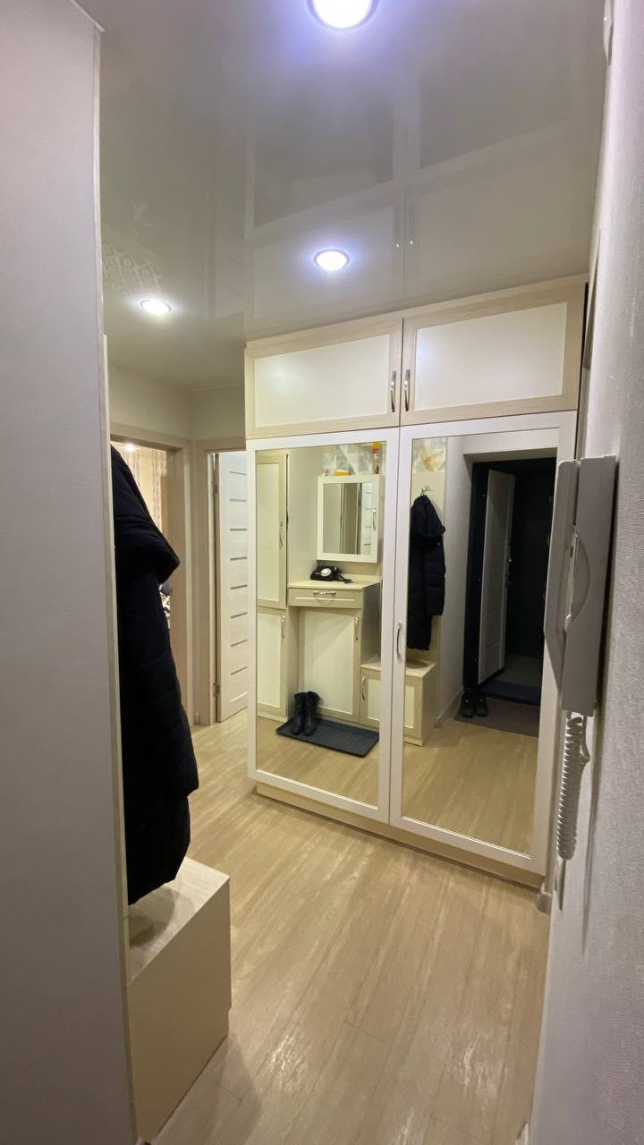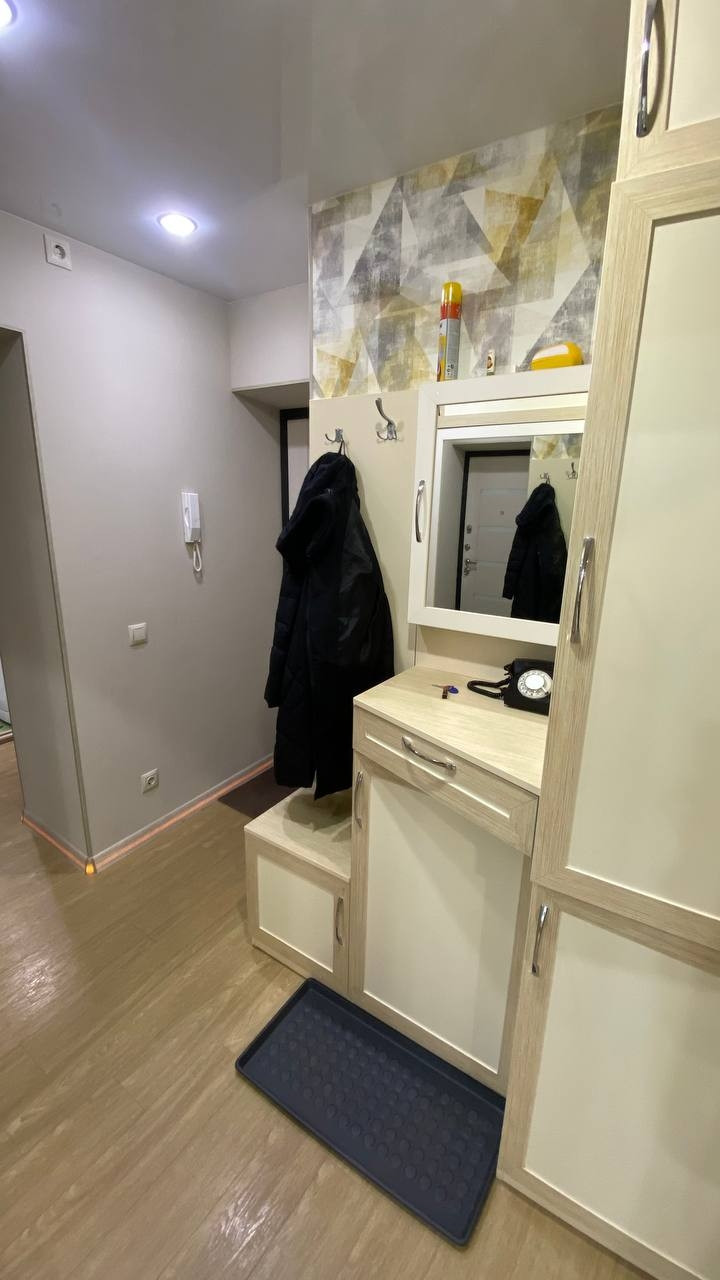 Гардеробная и прихожая ВСЯ!!!Сделан капитальный ремонт. Заменена полностью вся электрика, сантехника. Выравнены пол и стены. На полу уложено кварц виниловое покрытие, без порогов. В комнатах, кухни и на лоджии установлены металопластиковые окна. Натяжные потолки. Вся мебель индивидуального изготовления.