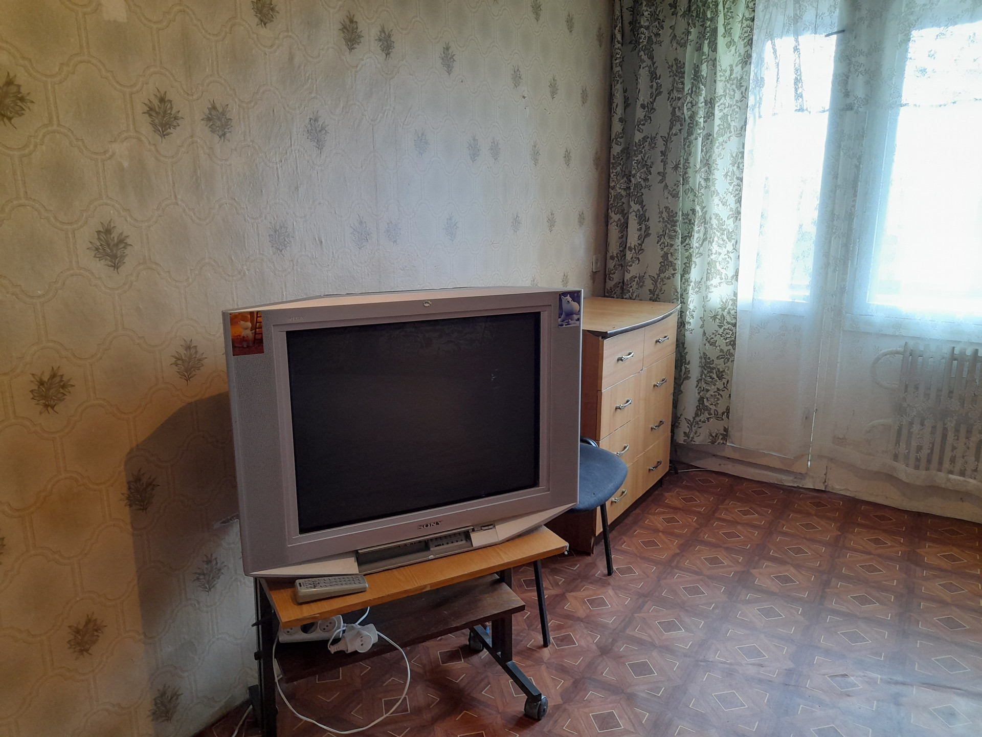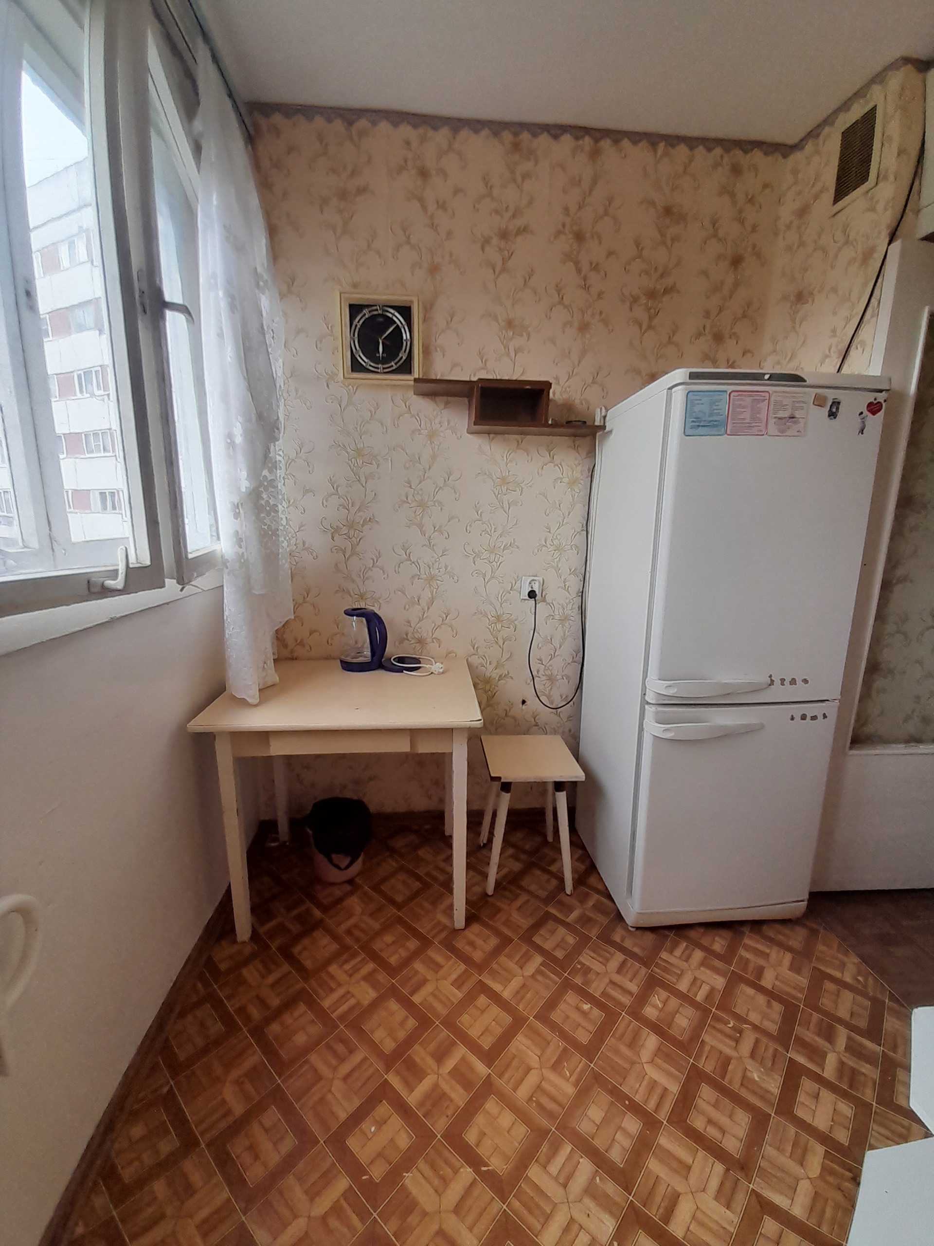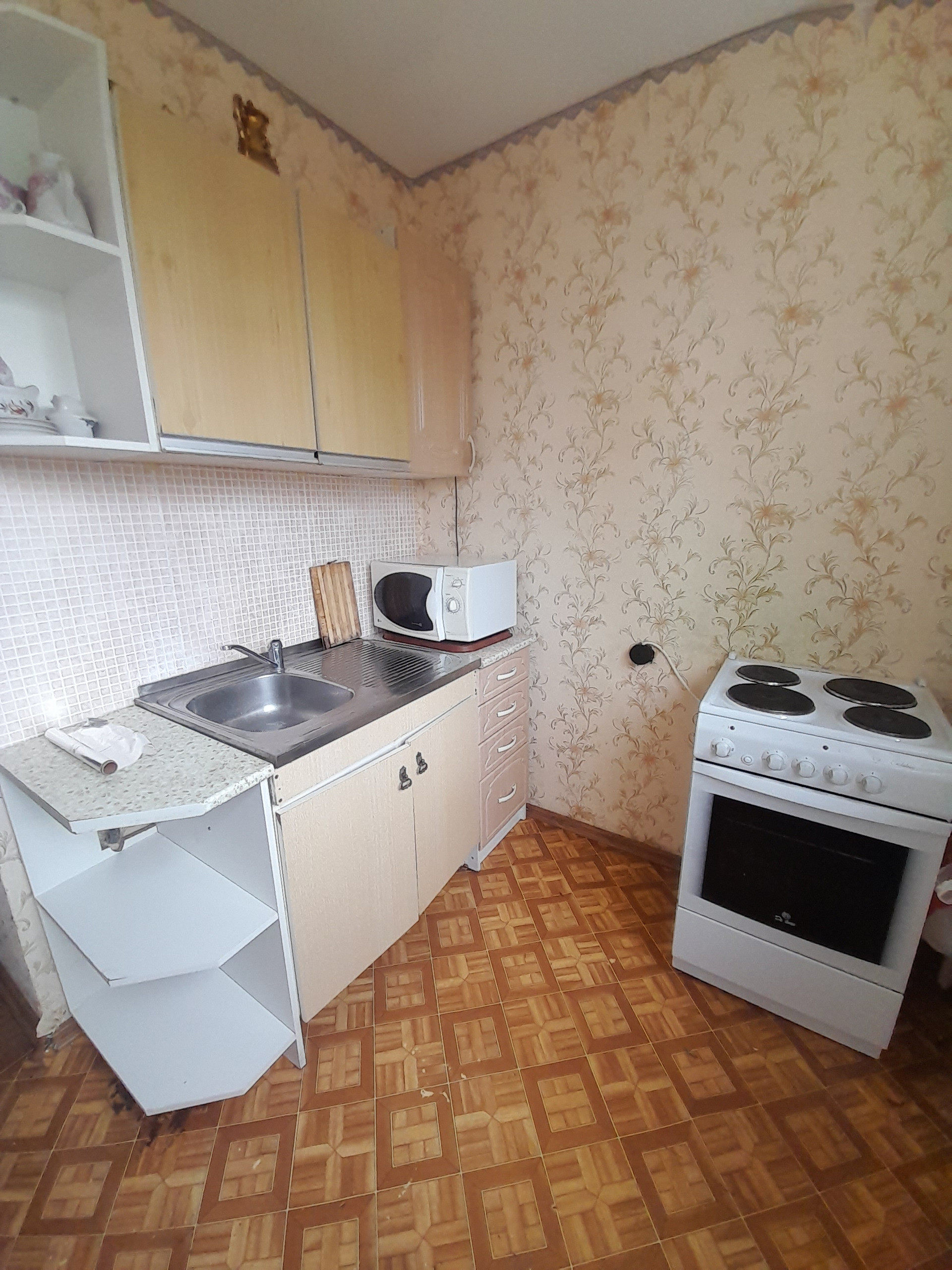 простое жилое состояние, но есть все необходимое для проживания: мебель, техника, посуда, подушки, одеяла