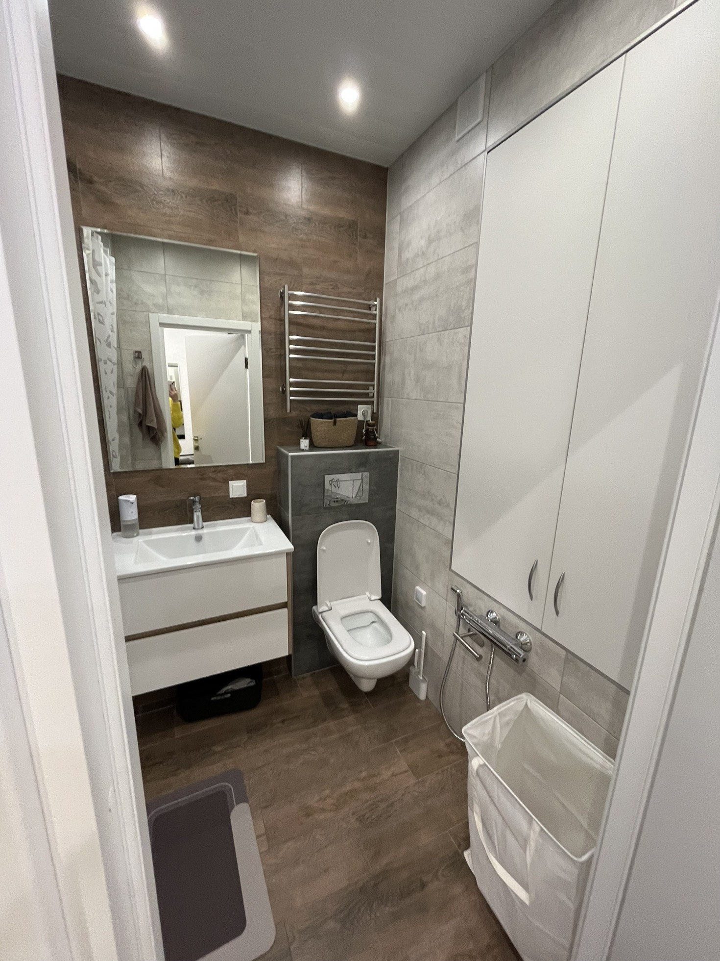 Оборудована гардеробная для хранения вещей, просторный совмещенный санузел.