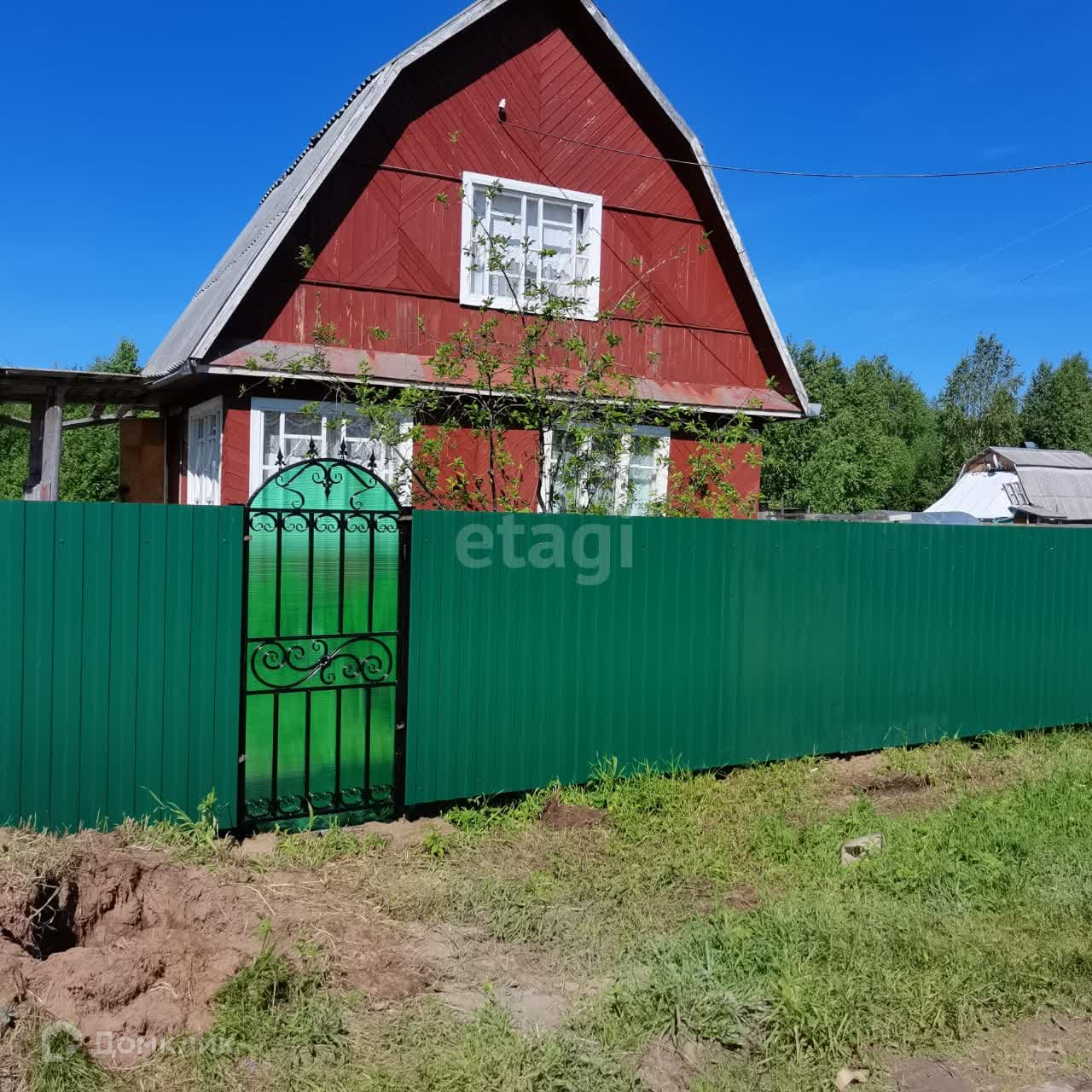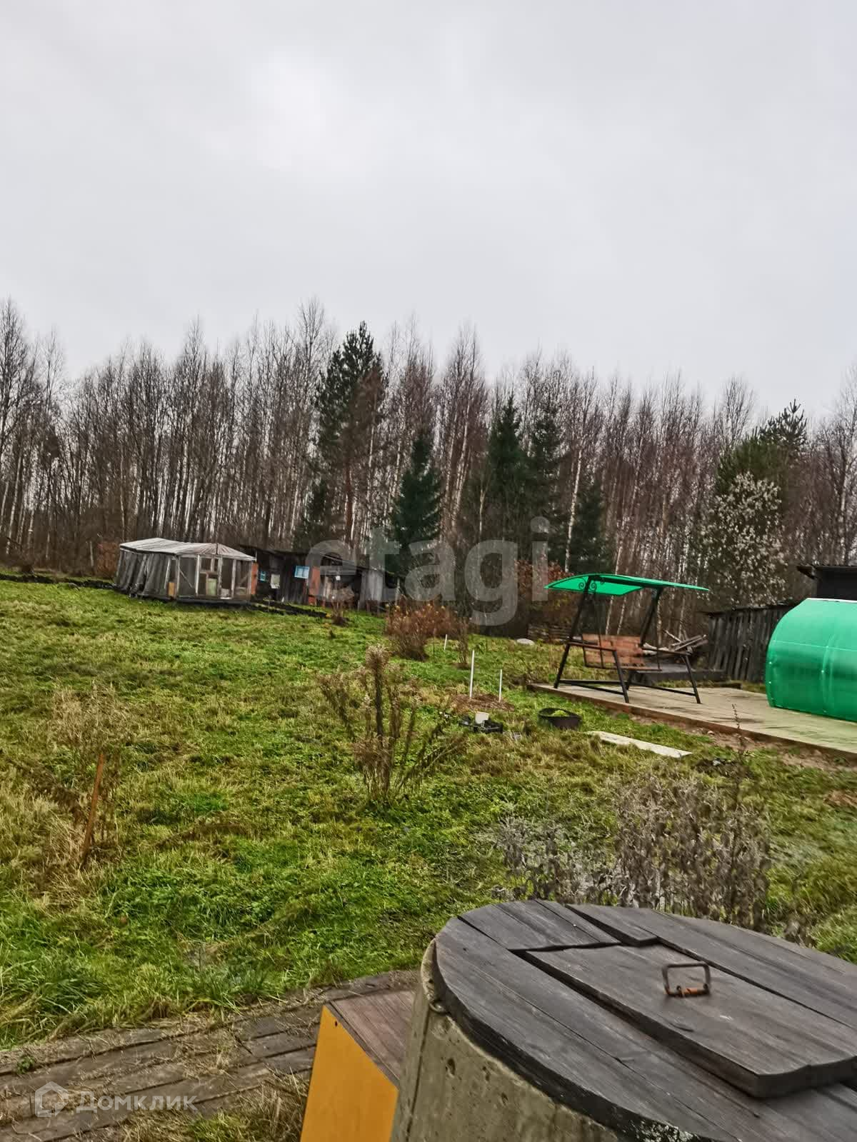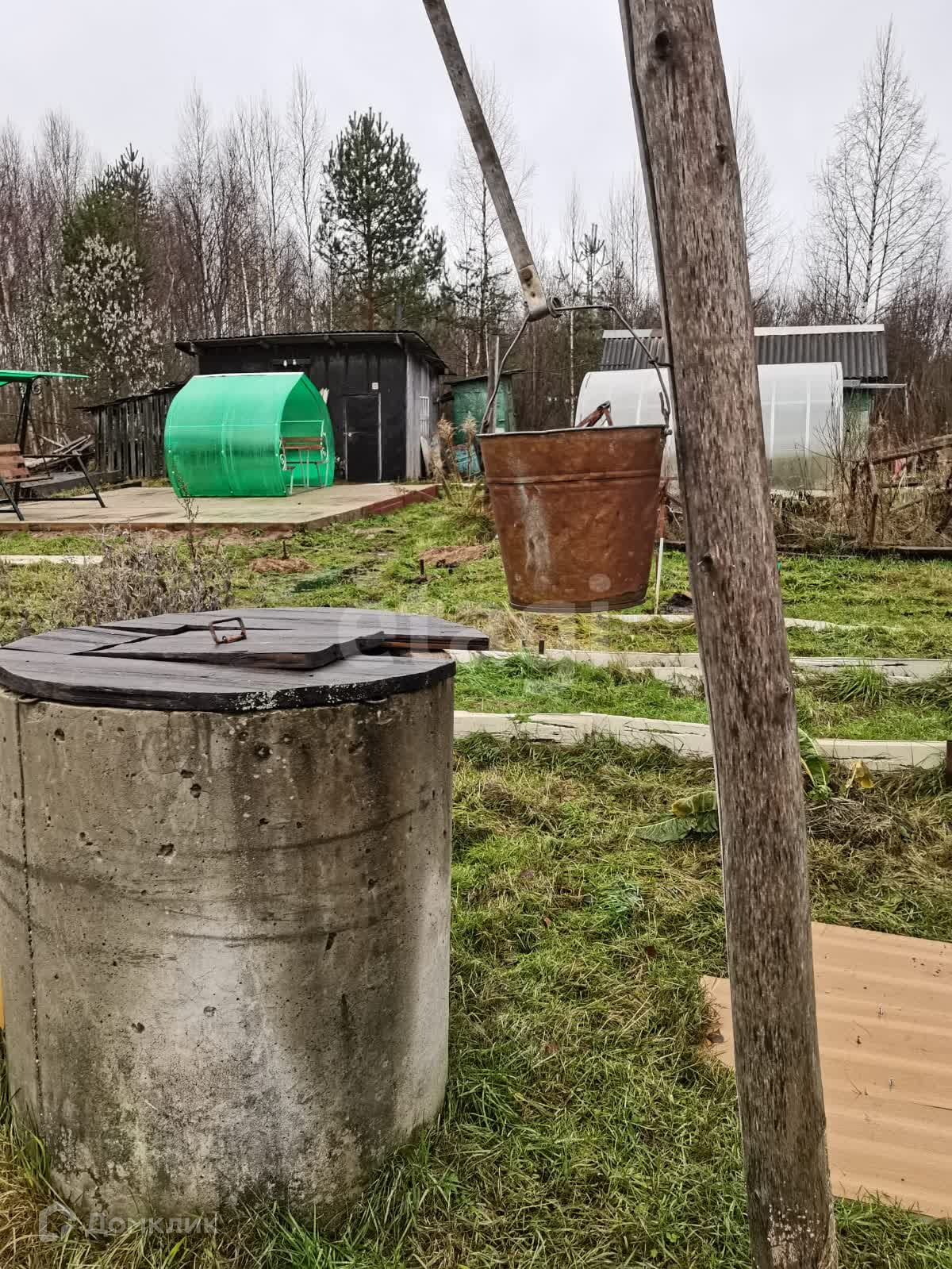 Земельный участок огорожен хорошим забором из профнастила. Кованая декоративная калитка. Участок разработан. Есть колодец, воду можно качать насосом или поднимать ведром. На участке есть большая теплица. Сарай для инвентаря. Есть рубленная баня, в отличном состоянии. Место отдыха на участке забетонировано и поставлена летняя декоративная беседка и качели.