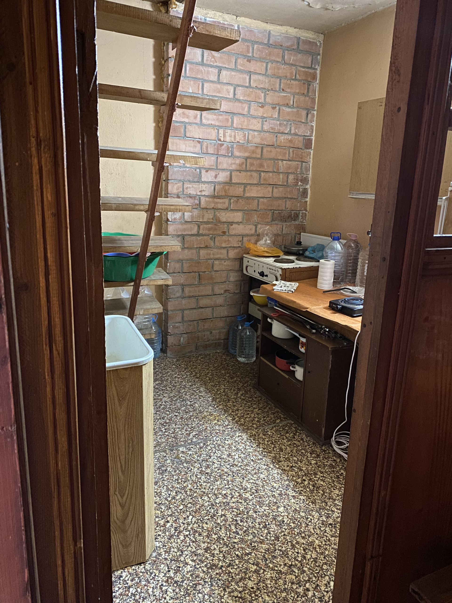 СОТ Дружба в пригороде г. Анапа Краснодарского края. Дом состоит из 2 этажей и гаража в ширину всего цоколя. На первом этаже кухня и просторная комната, на втором - одна комната, лоджия и два подсобных помещения. Отопление - действующий камин (очень хорошо и быстро протапливает дом).