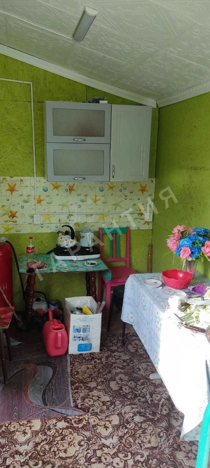 Летняя веранда-кухня, пригодная для проживания, обшита сайдингом, вставлены пластиковые окна, железная дверь. На крыше профнастил. Оставляем все что там находится: газовый баллон, электрическая плитка, лопаты, межкомнатные двери, два пластиковых окна + современные деревянные окна, два рулона рабицы.