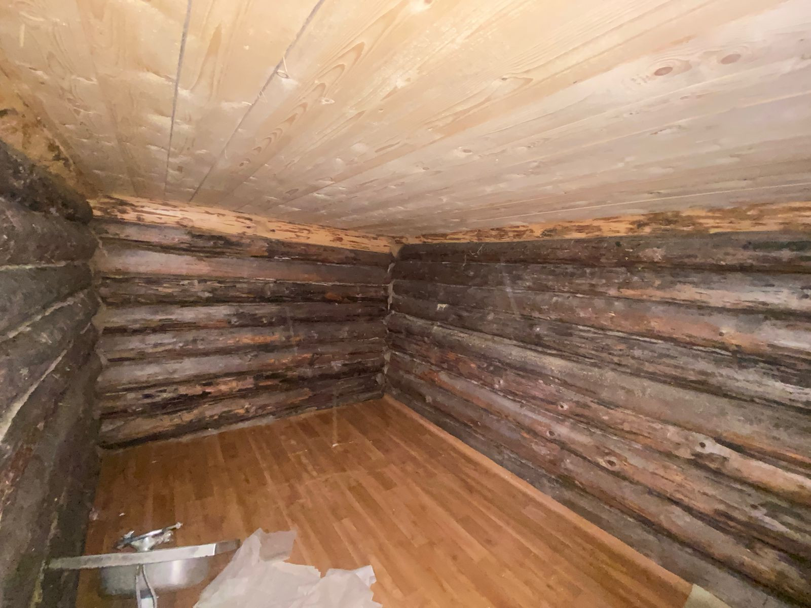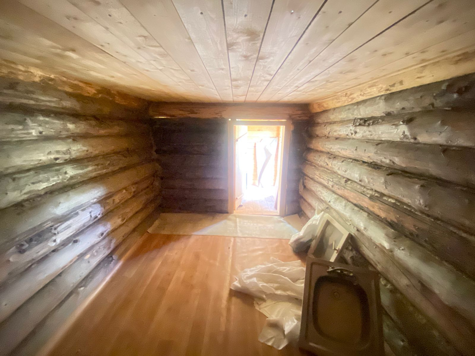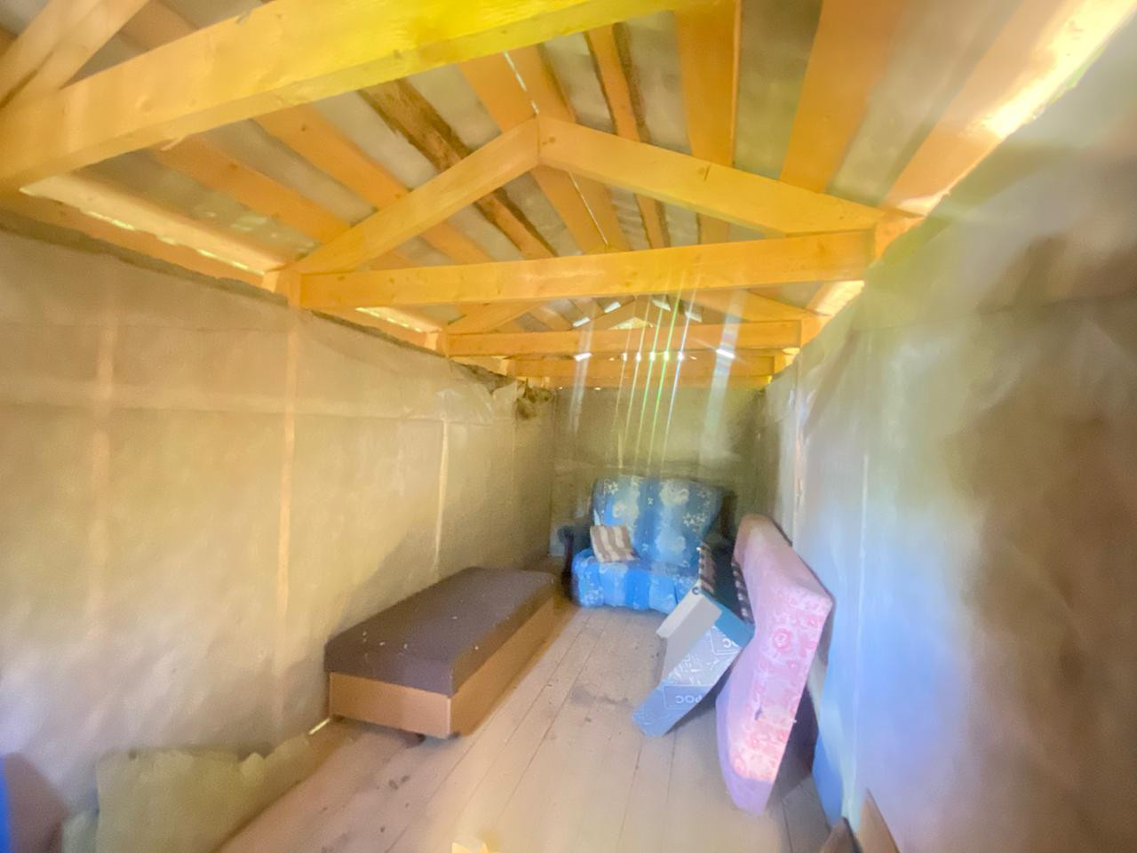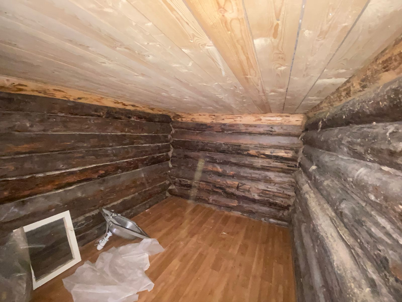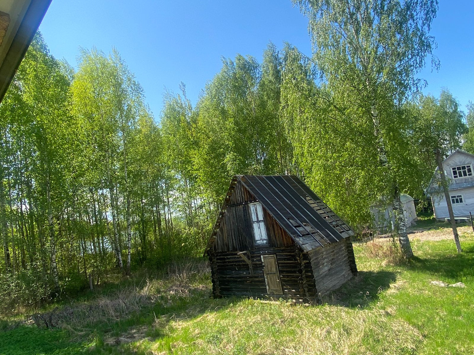 На участке стоит двухэтажный готовый сруб под крышей (профнастил) для бани-дома. Сруб 4*3+предбанник 2*3 с окном,  второй этаж 6*3, утепление с трёх сторон.