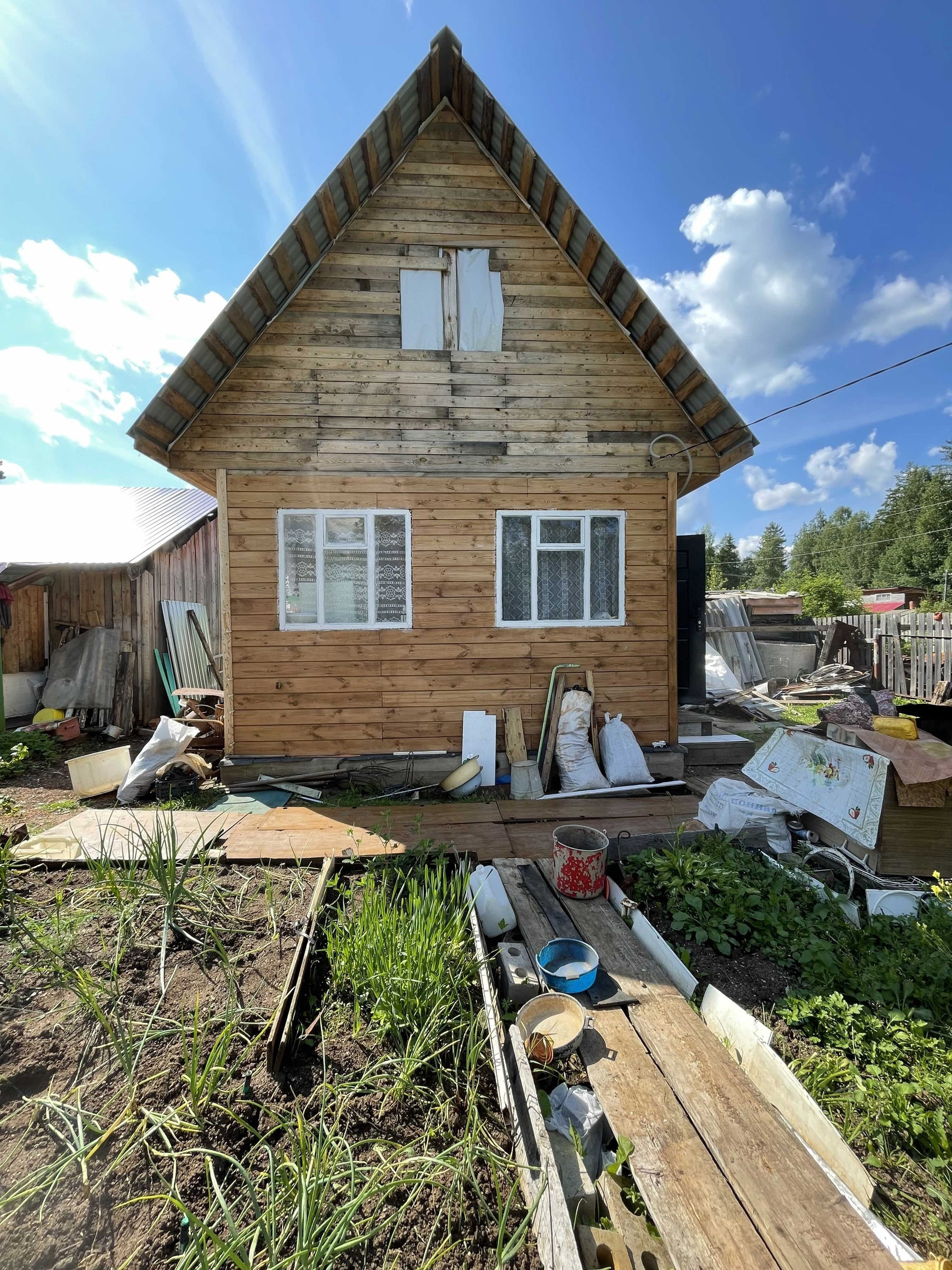 есть насаждения, ягодные кусты, в доме окна пвх,