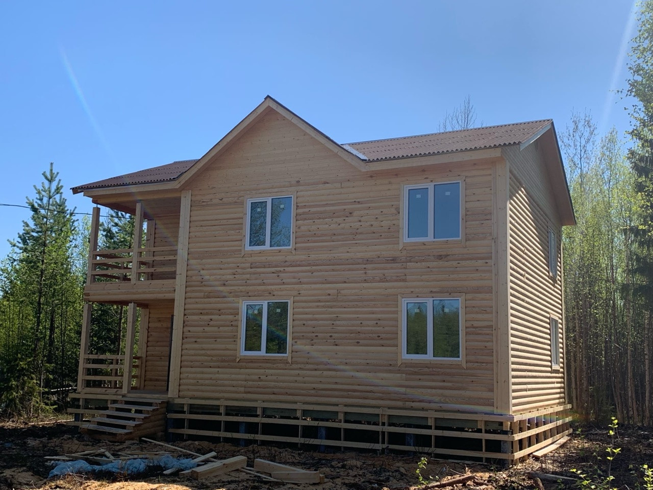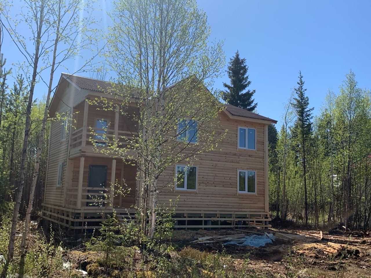 Дом на участке 14 соток из ПРОФИЛИРОВАННОГО БРУСА (блэк-хаус) шириной 200мм который практически не даёт усадку и не продувается за счёт пазов, сборка сруба в тёплый угол, площадь 190м2 - 11/8м. Полноценных два этажа с хорошей планировкой ( первый этаж: терраса, кухня, гостиная, просторный коридор, санузел, бойлерная. Второй этаж: холл , гардеробная или второй санузел, три спальни, балкон. Фундамент-железобетонные сваи 4м, сечением 150/150мм (34 шт ), Окна ПВХ 5 камер, напольное покрытие панели Quick Deck 20мм, утеплитель пол и потолок каменная вата 250мм.