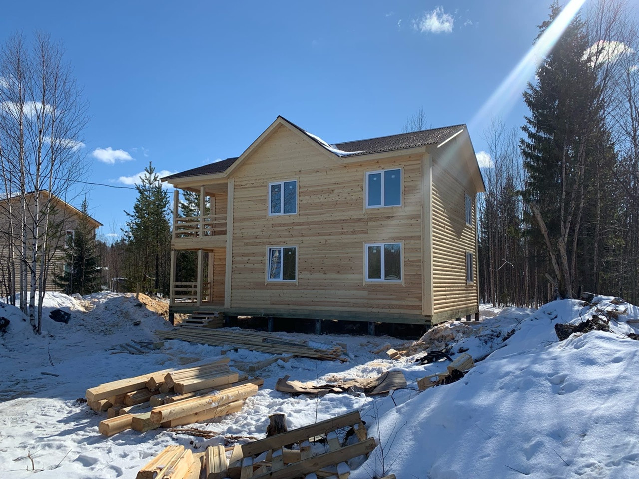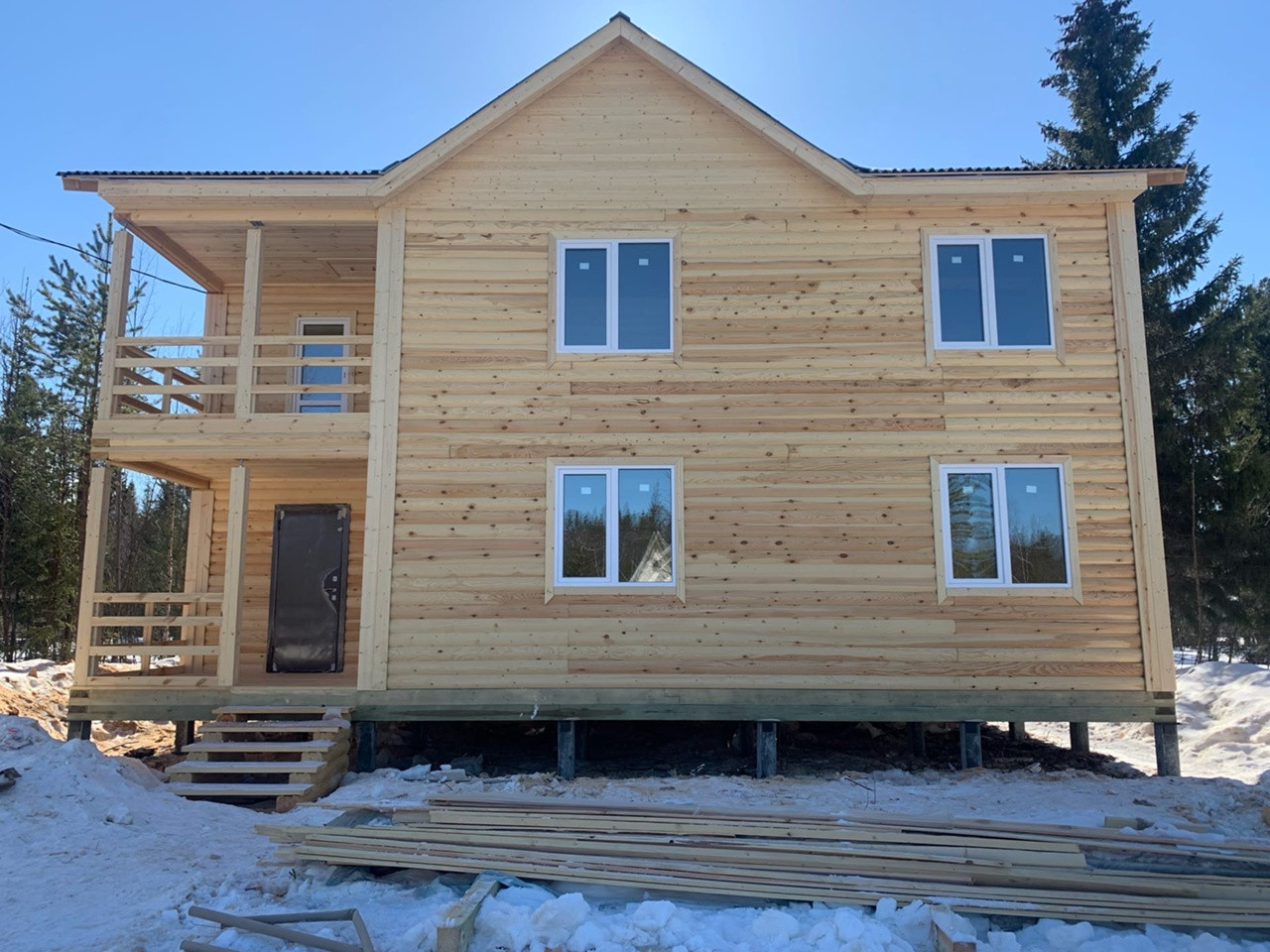 Дом на участке 14 соток из ПРОФИЛИРОВАННОГО БРУСА (блэк-хаус) шириной 200мм который практически не даёт усадку и не продувается за счёт пазов, сборка сруба в тёплый угол, площадь 190м2 - 11/8м. Полноценных два этажа с хорошей планировкой ( первый этаж: терраса, кухня, гостиная, просторный коридор, санузел, бойлерная. Второй этаж: холл , гардеробная или второй санузел, три спальни, балкон. Фундамент-железобетонные сваи 4м, сечением 150/150мм (34 шт ), Окна ПВХ 5 камер, напольное покрытие панели Quick Deck 20мм, утеплитель пол и потолок каменная вата 250мм.
