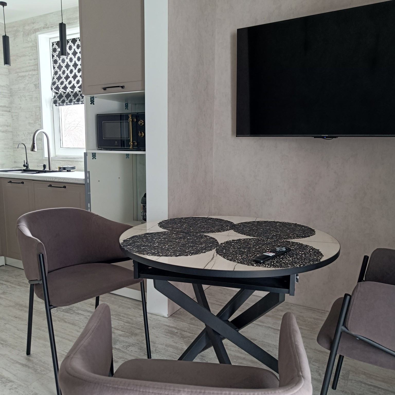 • полностью оборудованная кухня с встроенной варочной панелью и встроенным духовым шкафом;