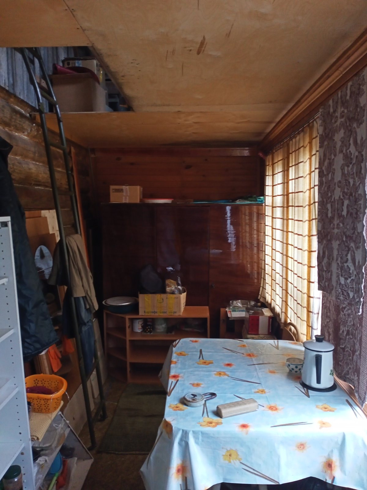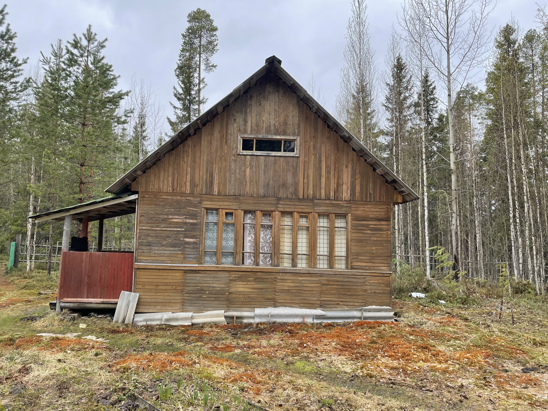 Дом из бруса, печка есть, газ в баллонах. Света нет.