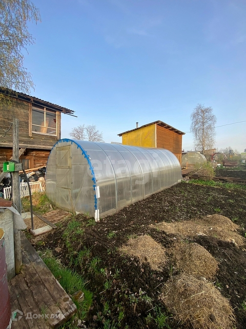 А еще на территории есть две яблони - осенняя и летняя. Дом выполнен из блок-контейнера и оборудован стеклопакетами, что обеспечивает комфортное пребывание в любое время года.