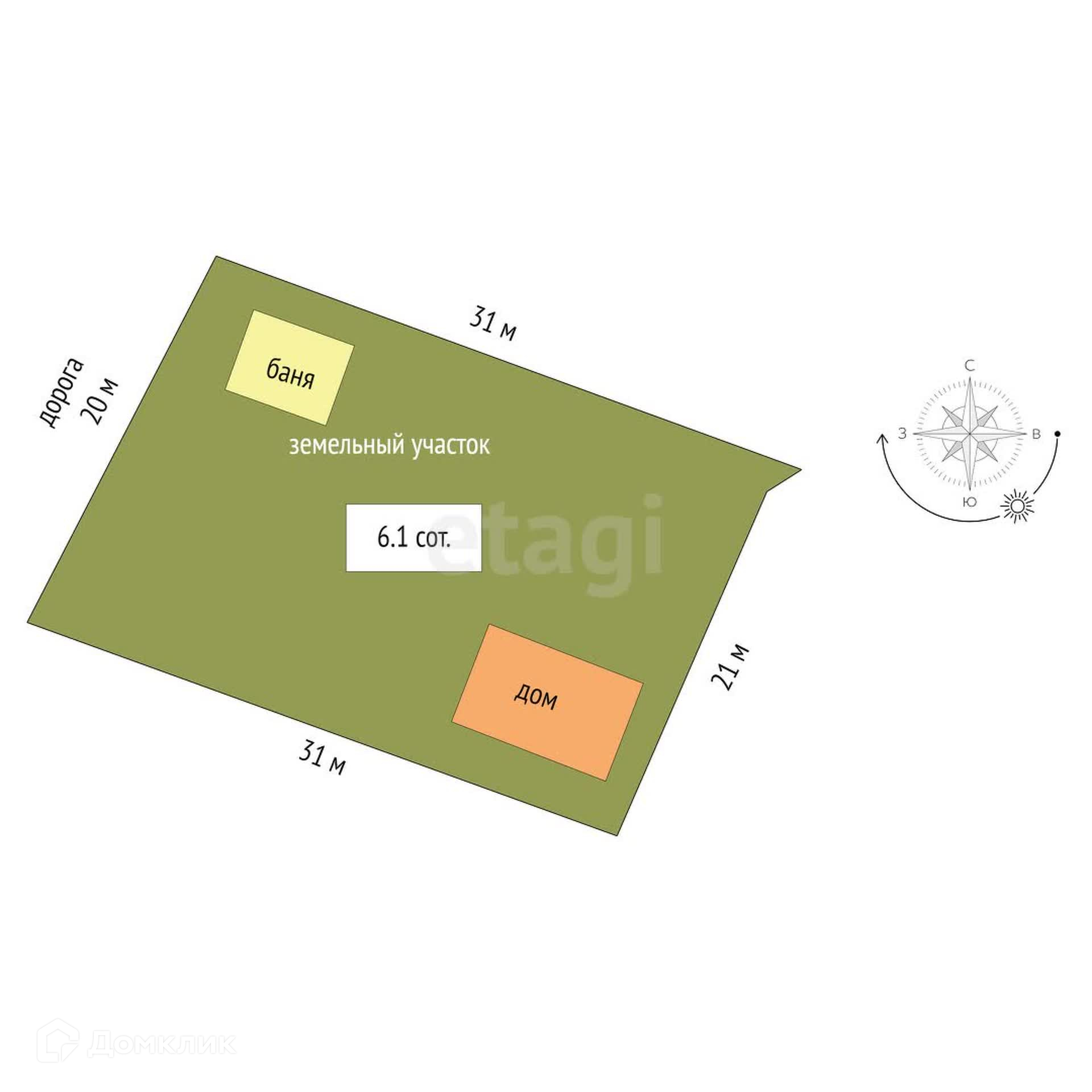 Площадь участка 6.1 сот.