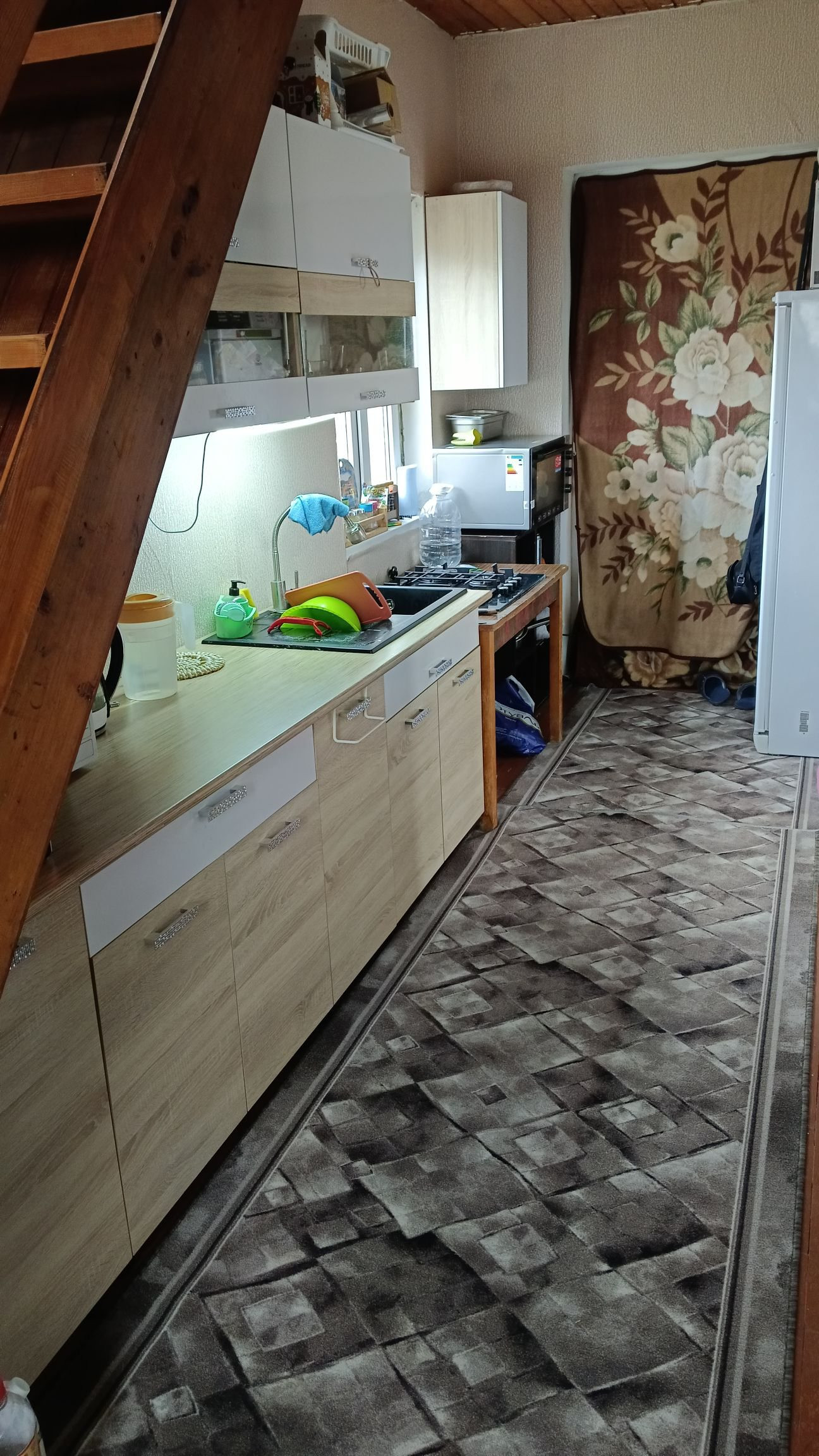 Первый этаж - прихожая, кухня, комната, санузел.