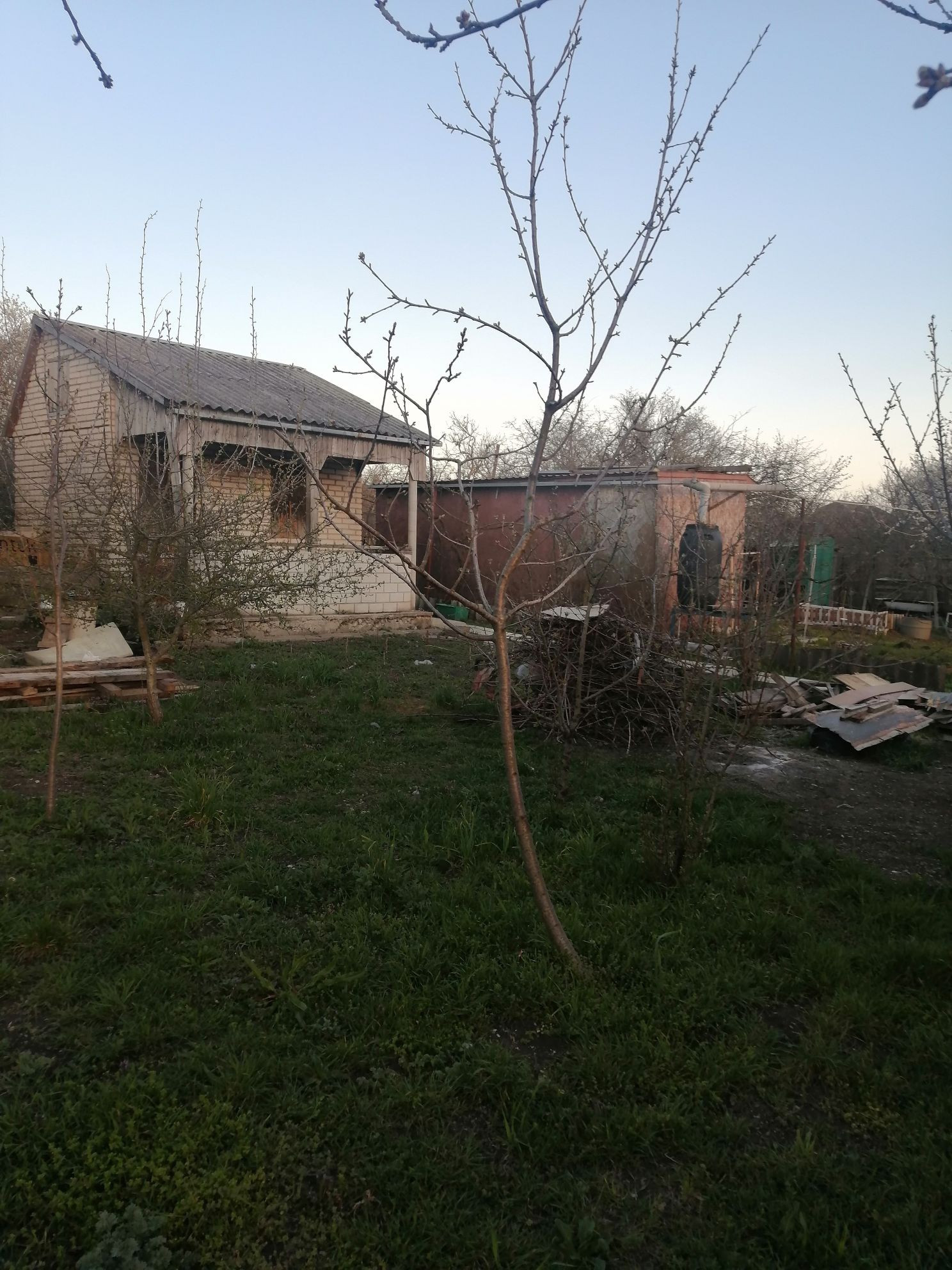 На участке есть кирпичная постройка из которой планировалось сделать баню, но можно и гостевой домик, летний душ. Растут плодовые деревья, есть место для посадки овощей и зелени. Участок 5 соток +2сотки.