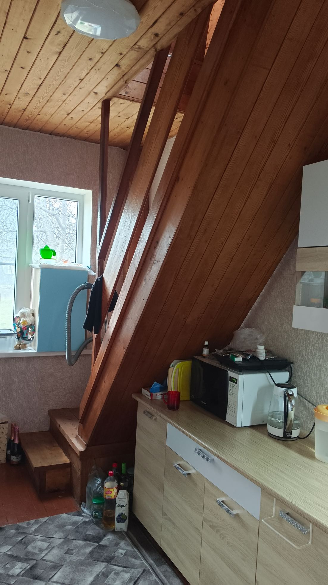 Первый этаж - прихожая, кухня, комната, санузел.