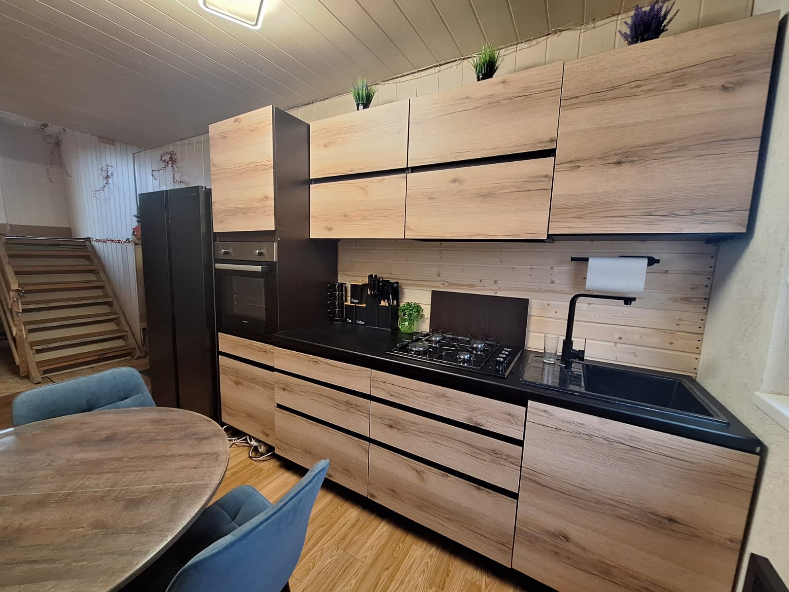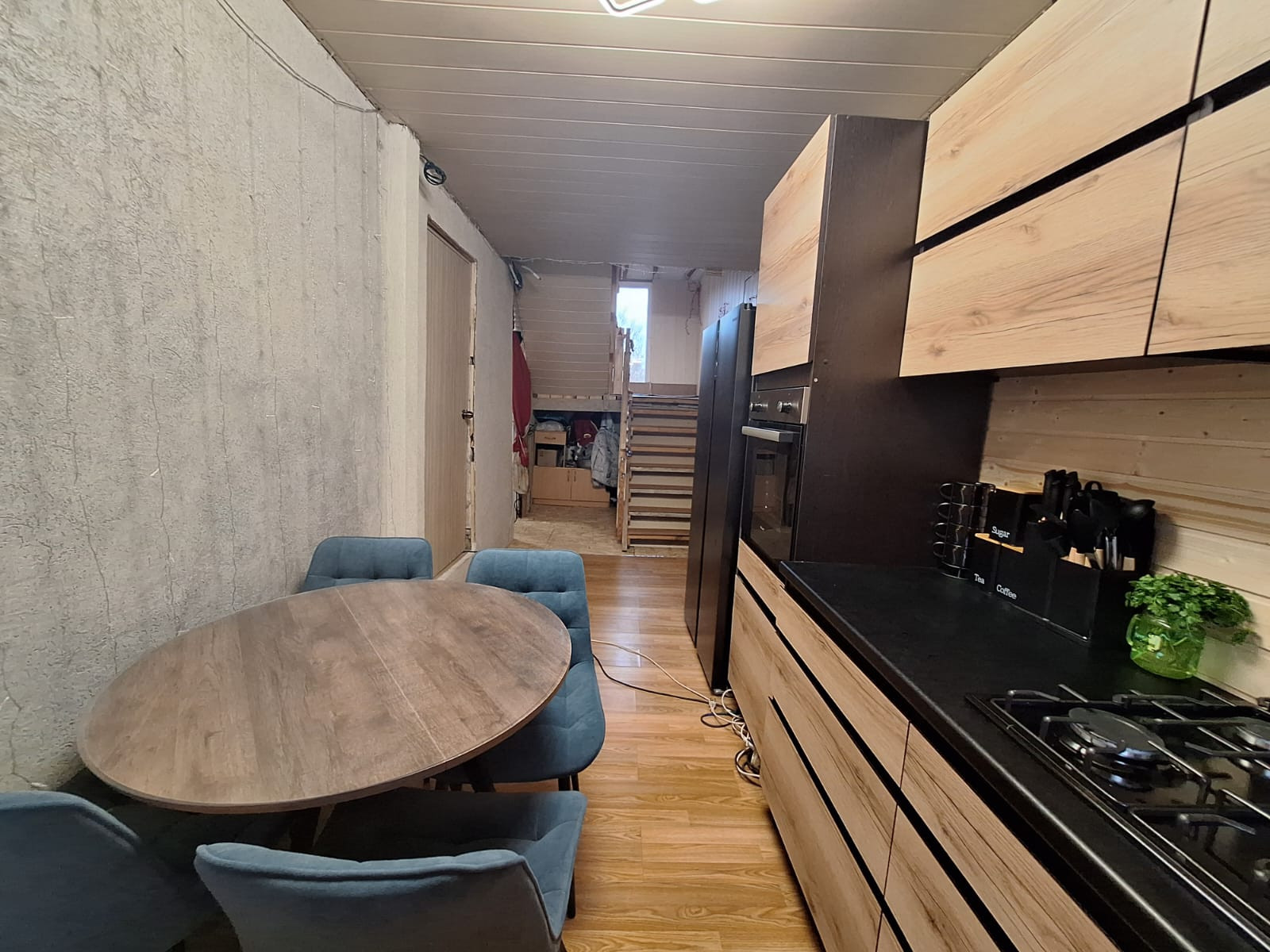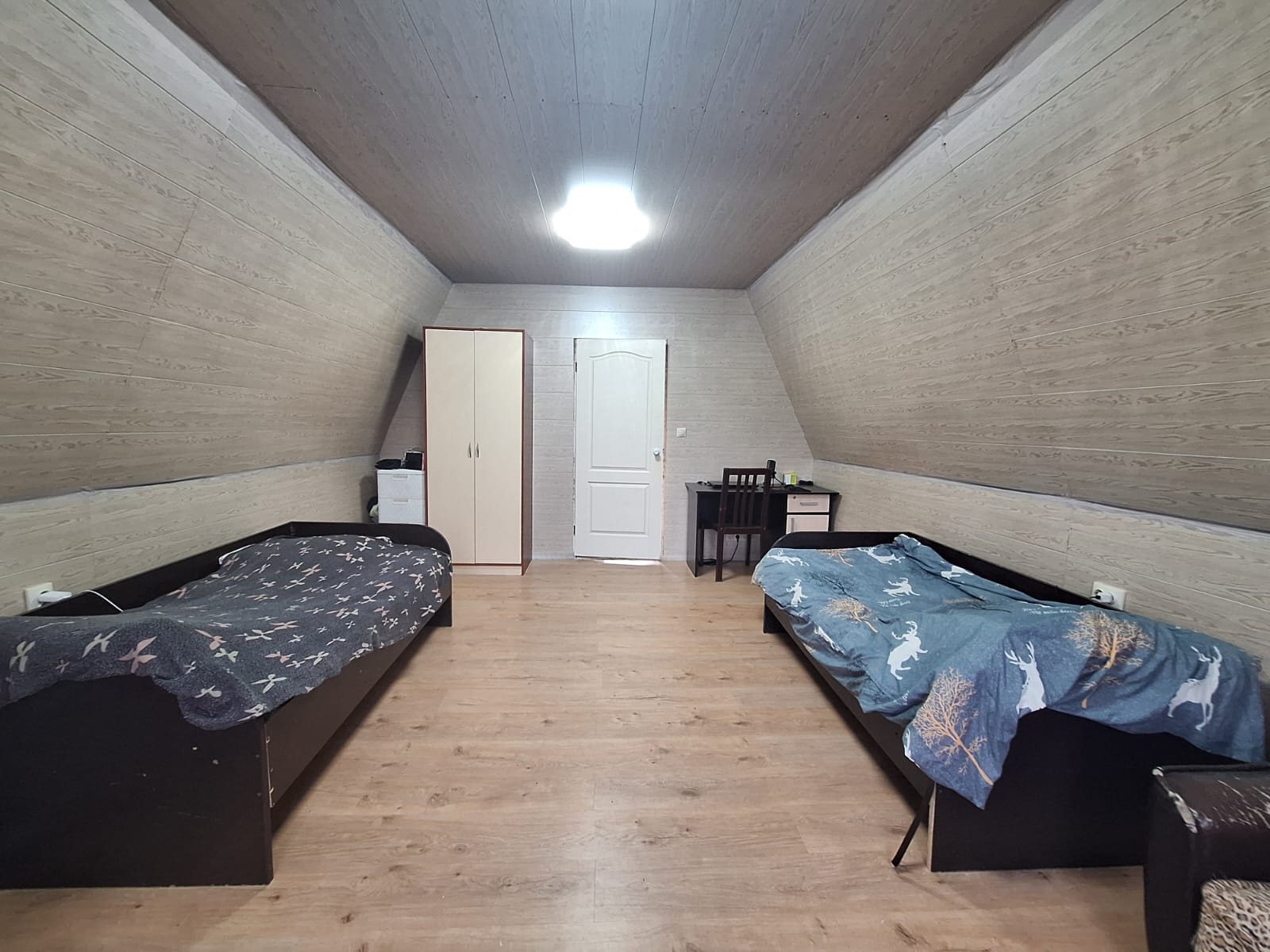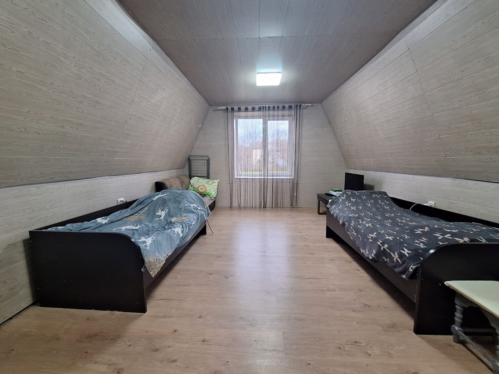 На первом этаже расположились: терраса, кухня, 2 изолированные комнаты, гардеробная, совмещенный просторный сан.узел; на мансардном этаже холл и просторная комната. Мансардный этаж очень теплый. Есть подвал для хранения консервации.