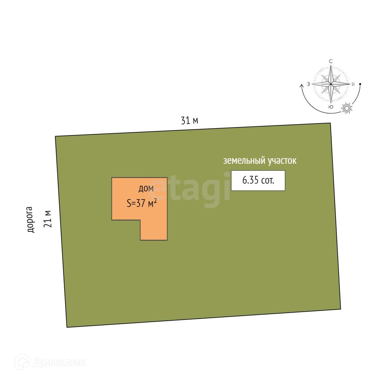 Площадь участка 6.35 сот.