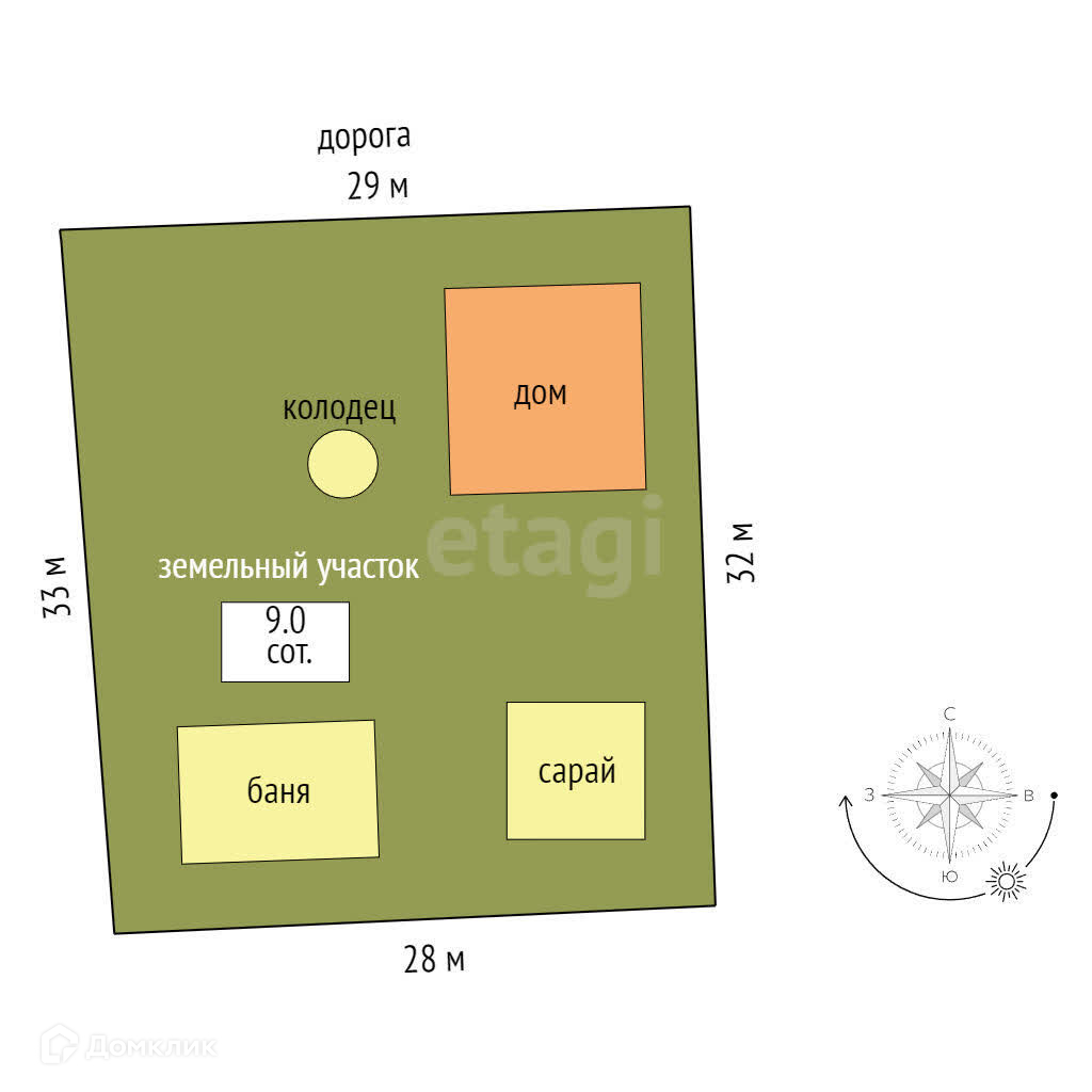 Площадь участка 9 сот.