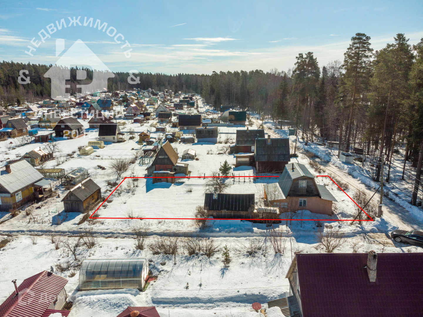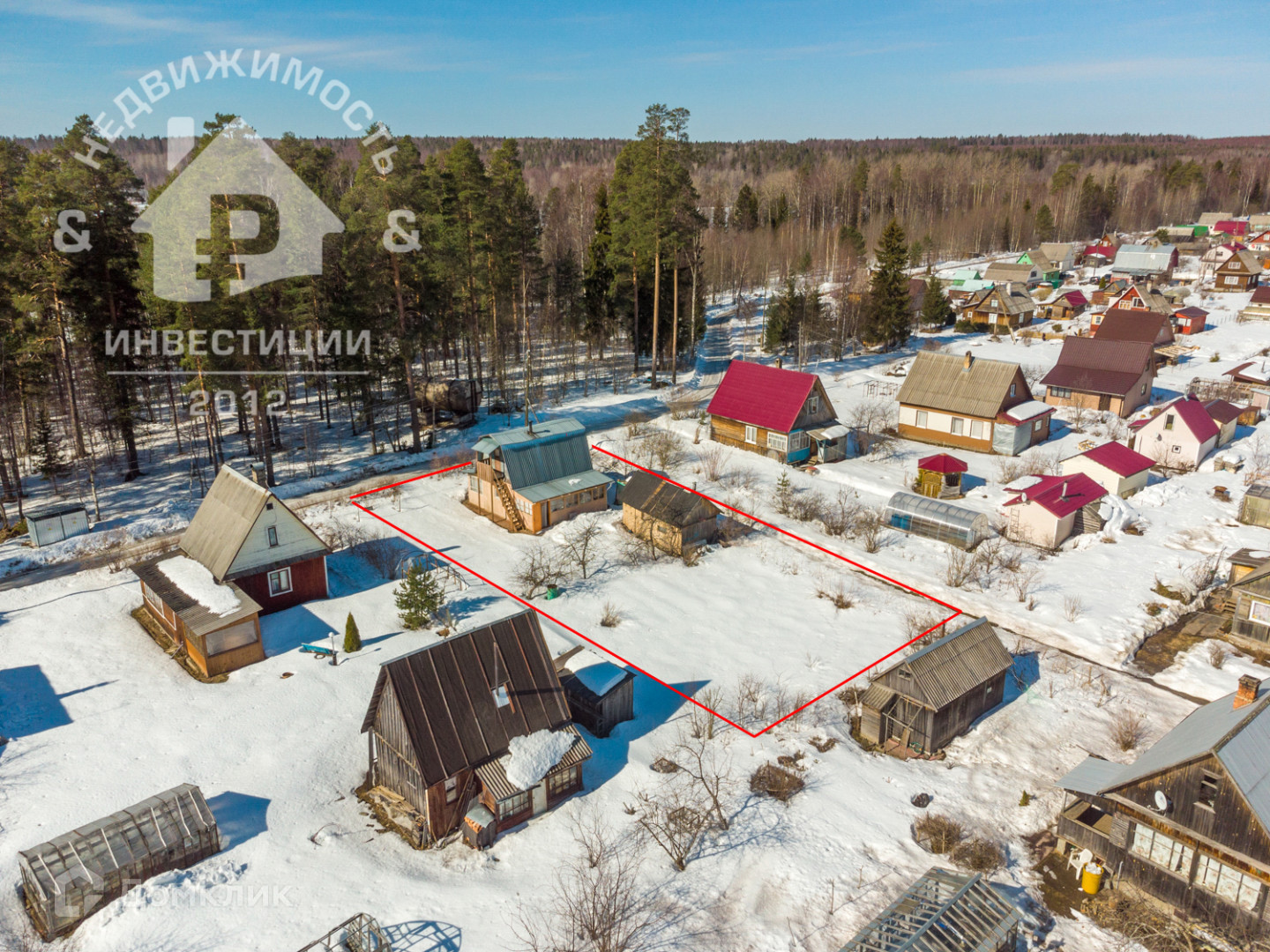 Участок площадью 8 соток, сделано межевание, круглогодичный подъезд, солнечная сторона, на нем располагается дом, баня, теплица, хозяйственные постройки, так же на участке посажены: яблоня, вишня, малина, клубника.